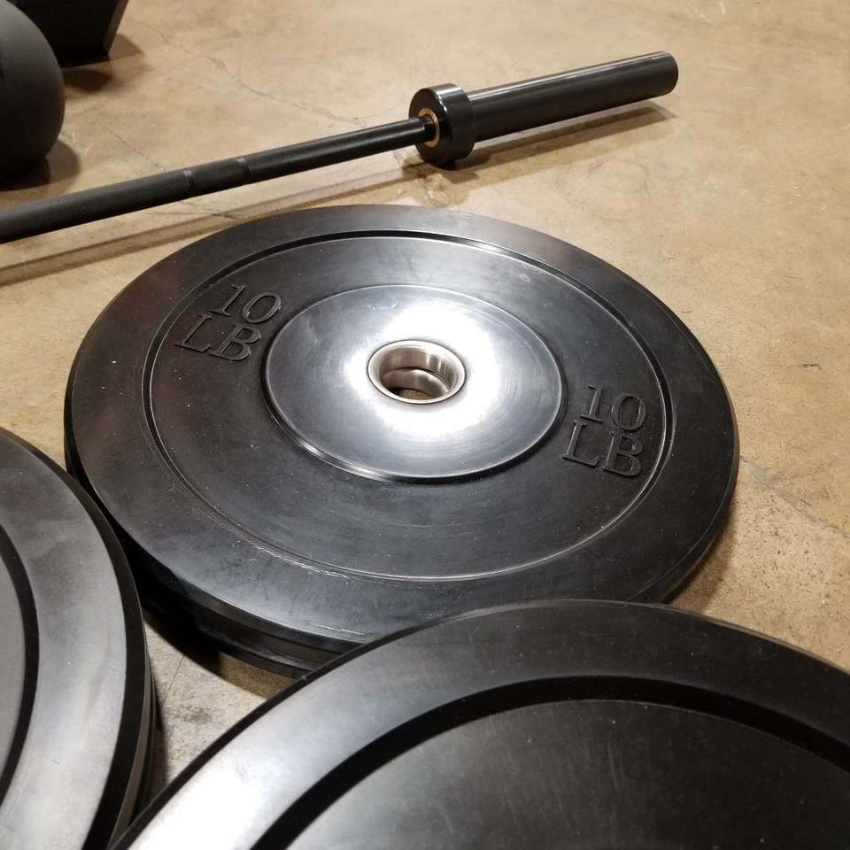 The Artemis Pro Gym Set Up with Barbell and Bumper Plate Set includes 35 Pound Commercial Barbell (upgrade to 45# Mens Barbell no extra cost), 170 pounds of our G8 Solid Rubber Bumper Plates (all sizes droppable️️️️️️️️️️) plus a pair of 5 pound steel change plates and free weight collars, all total 215 pounds of weight plus a favorite 3 Piece Kettlebell Set and a sweet 5 pair set of dumbbells. Oh, and with the pro set you also get a 12x14x16 Plyo/Step Box (upgrade to 16x20x24 for just $40 more) and 1 wall ball in your choice! - any size - 6lb up to 15lb available.