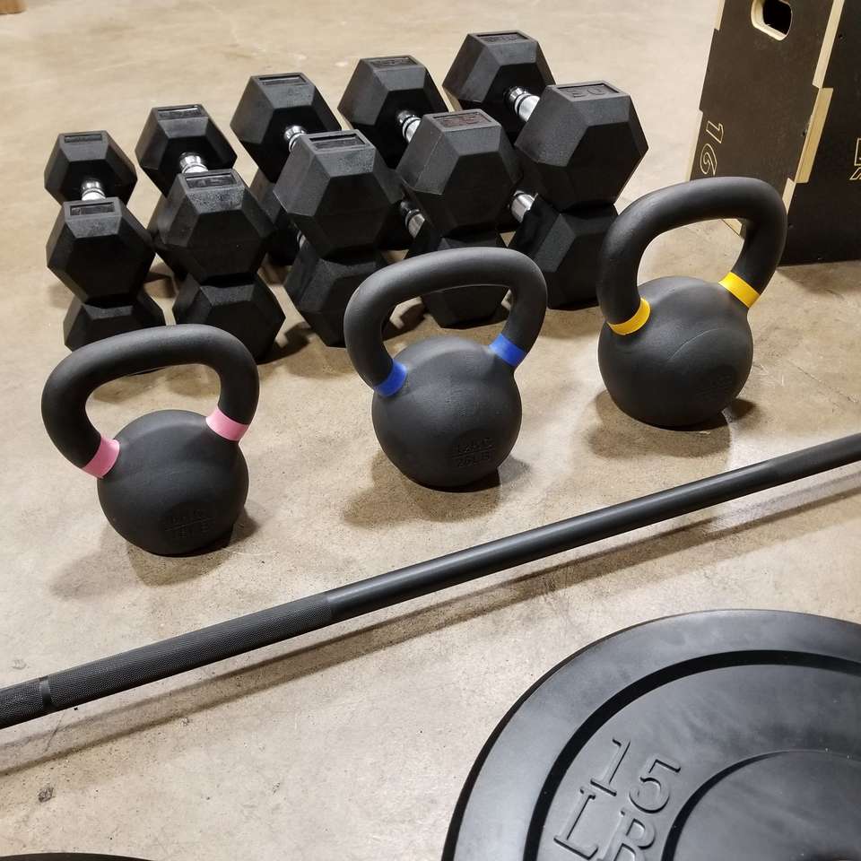 Kettlebells include one of each 35 26 18lb.