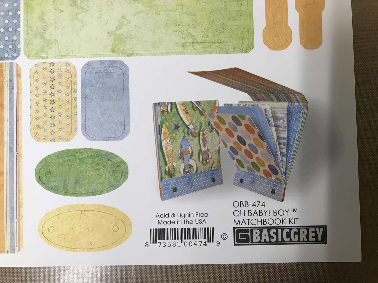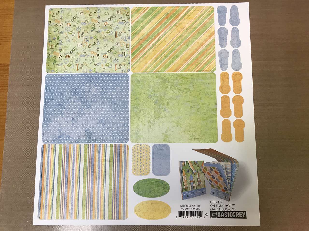 Baby Boy BasicGrey OH BABY! MATCHBOOK ALBUM KIT scrapbooking 7 PGS FRAMES TAGS LABELS, New. Plus 2 Blue 12"x12" cardstock sheets Made to Match.