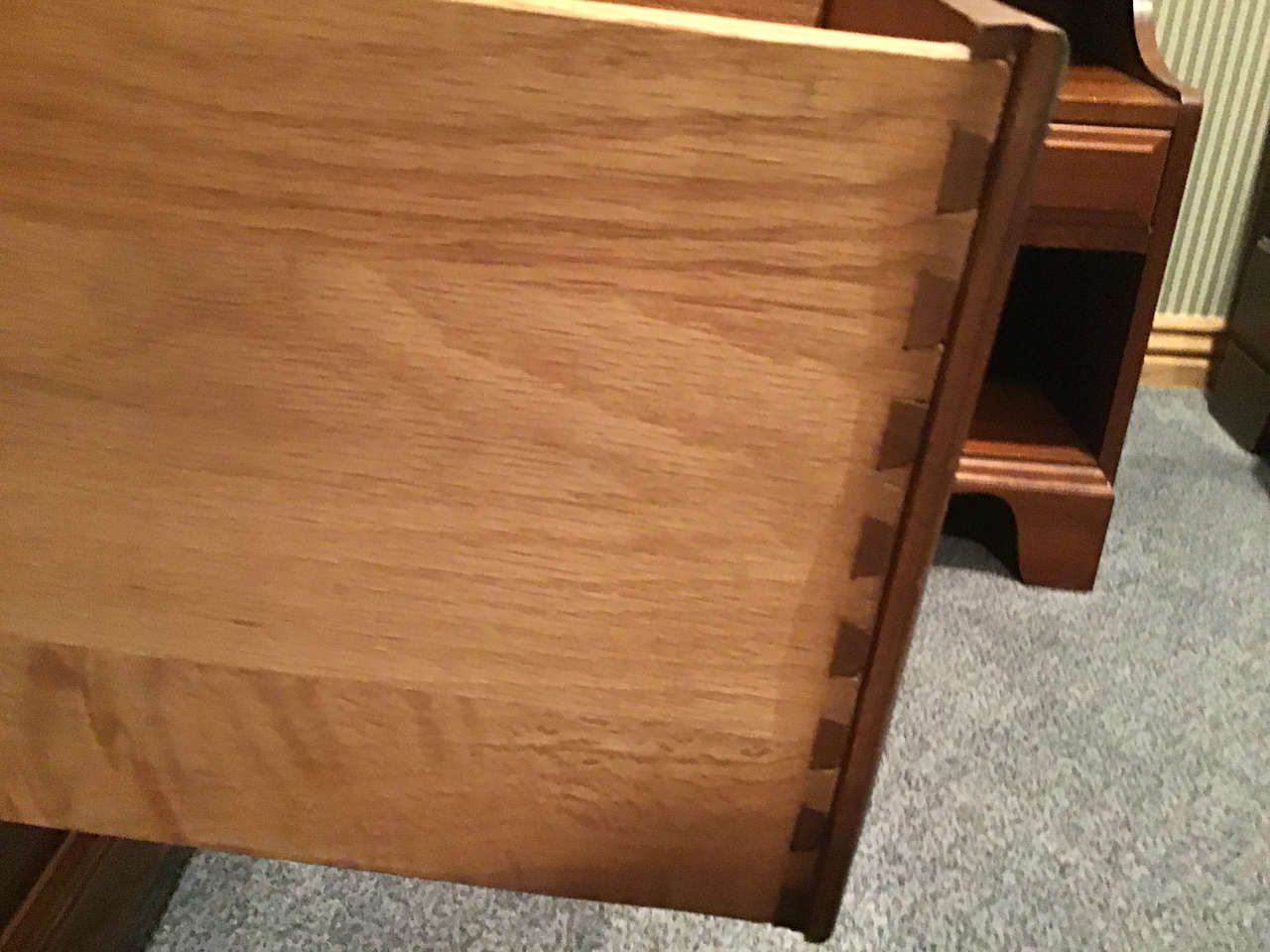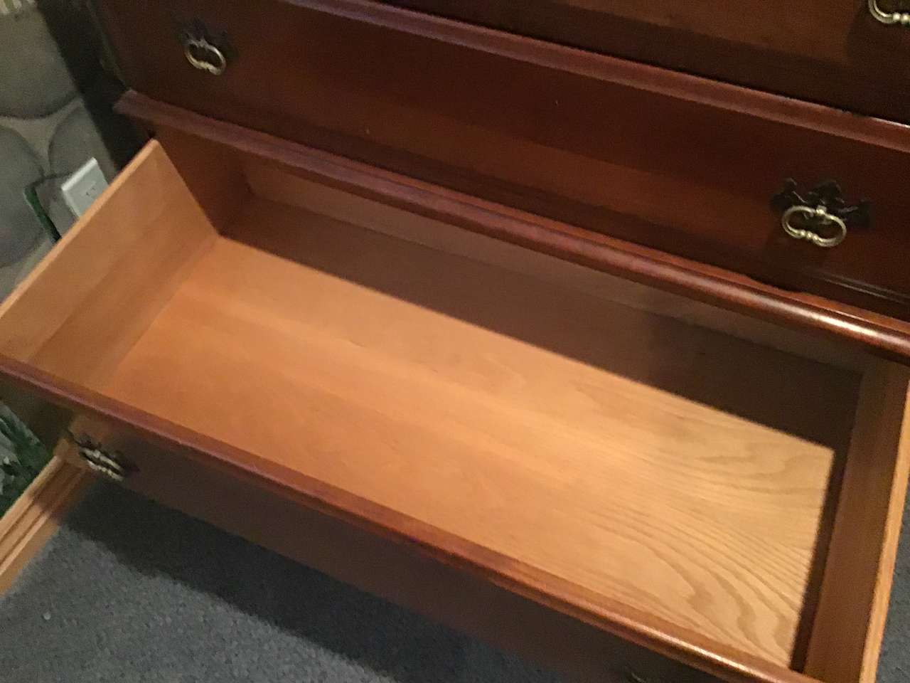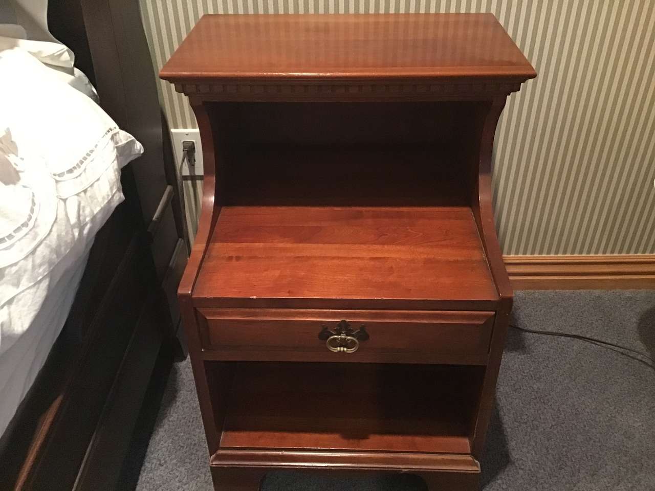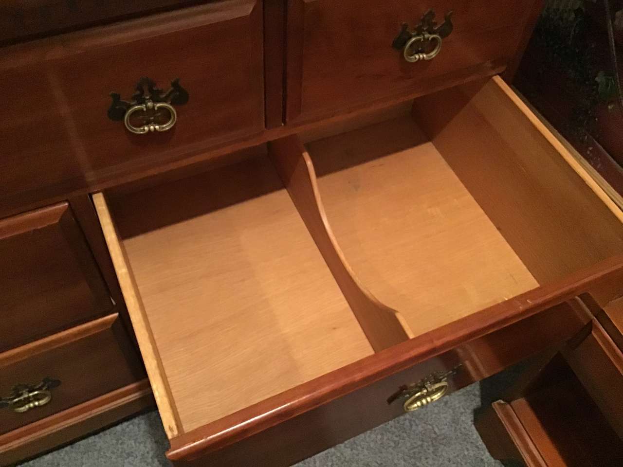 Mid-Century Davis Cabinet Company 9-piece Solid Cherry Bedroom Full/Queen Set! Sold as set! Quality! "Tawny Cherry" Made in Nashville,Tennessee! Quality! 9 drawer dresser & mirror. (Dresser) 58"X20X33.5" (Mirror) 45"X37", 5 drawer upright dresser. 35"X20"X49", Head board. 56"X46", Foot board! 56"X28", 2 side boards. 76" long, 2 night stands with drawer. 20"X19"X28". Call Doug for details- 801-949-9415.