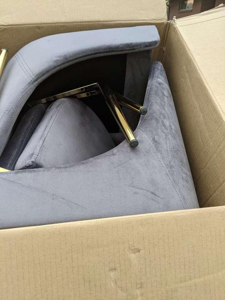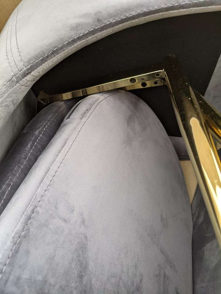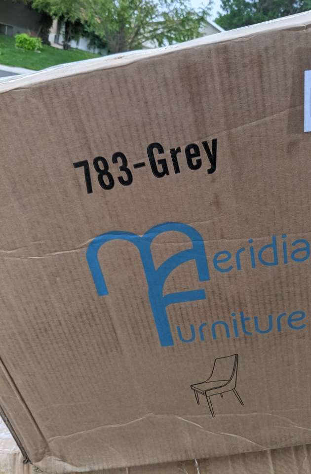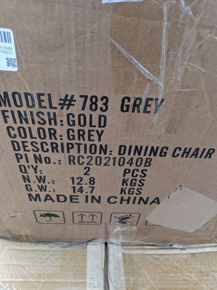 Set of 2 chairs Located in Riverton Cash Venmo Retails 400+ Brand: Meridian Furniture Series: Dining Chair Style: Contemporary Color: Grey Velvet Finish: Gold Size: 19.5" W x 21.5" D x 33.5" H UPC: 647899949869 MPN: 783Grey-C Material: Velvet bin#SU