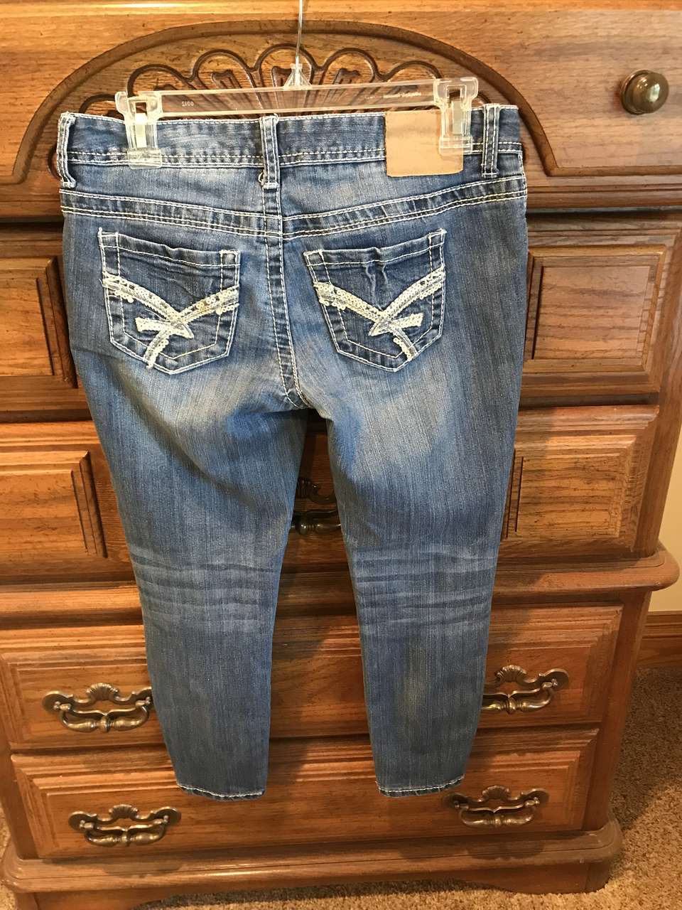 Series 31 Crop Jeans Size 5, 2 Pairs, 70% Cotton, 28% Polyester, 2% Spandex & 3 Size S Tops. Used but in great condition. Comes from a smoke and pet free home. $5.00 for each pair.