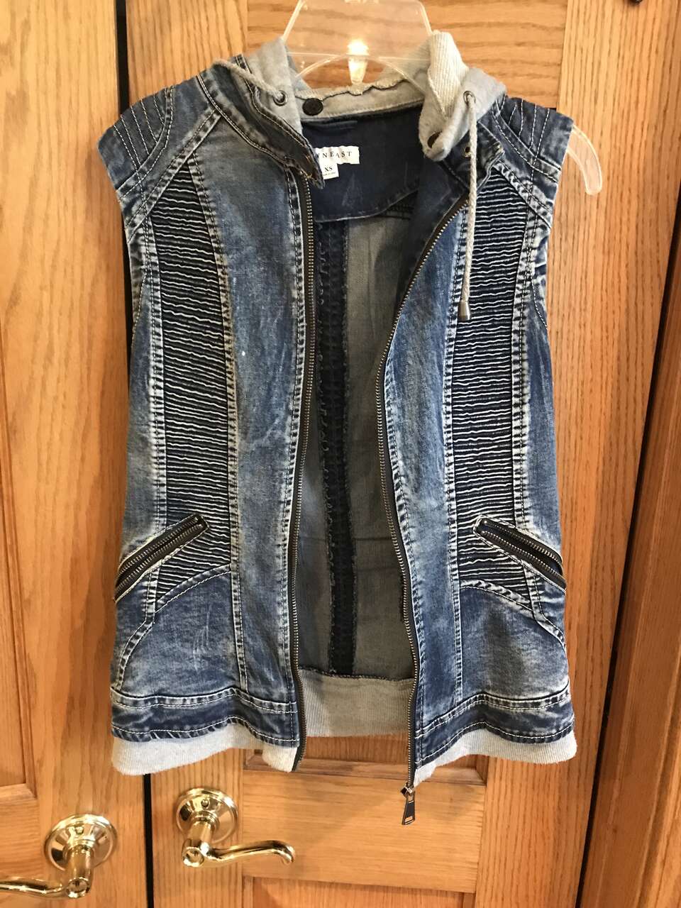 Downeast Size XS Sleeveless Hoodie Denim Jacket, All Zippers work, excellent condition, $5.00