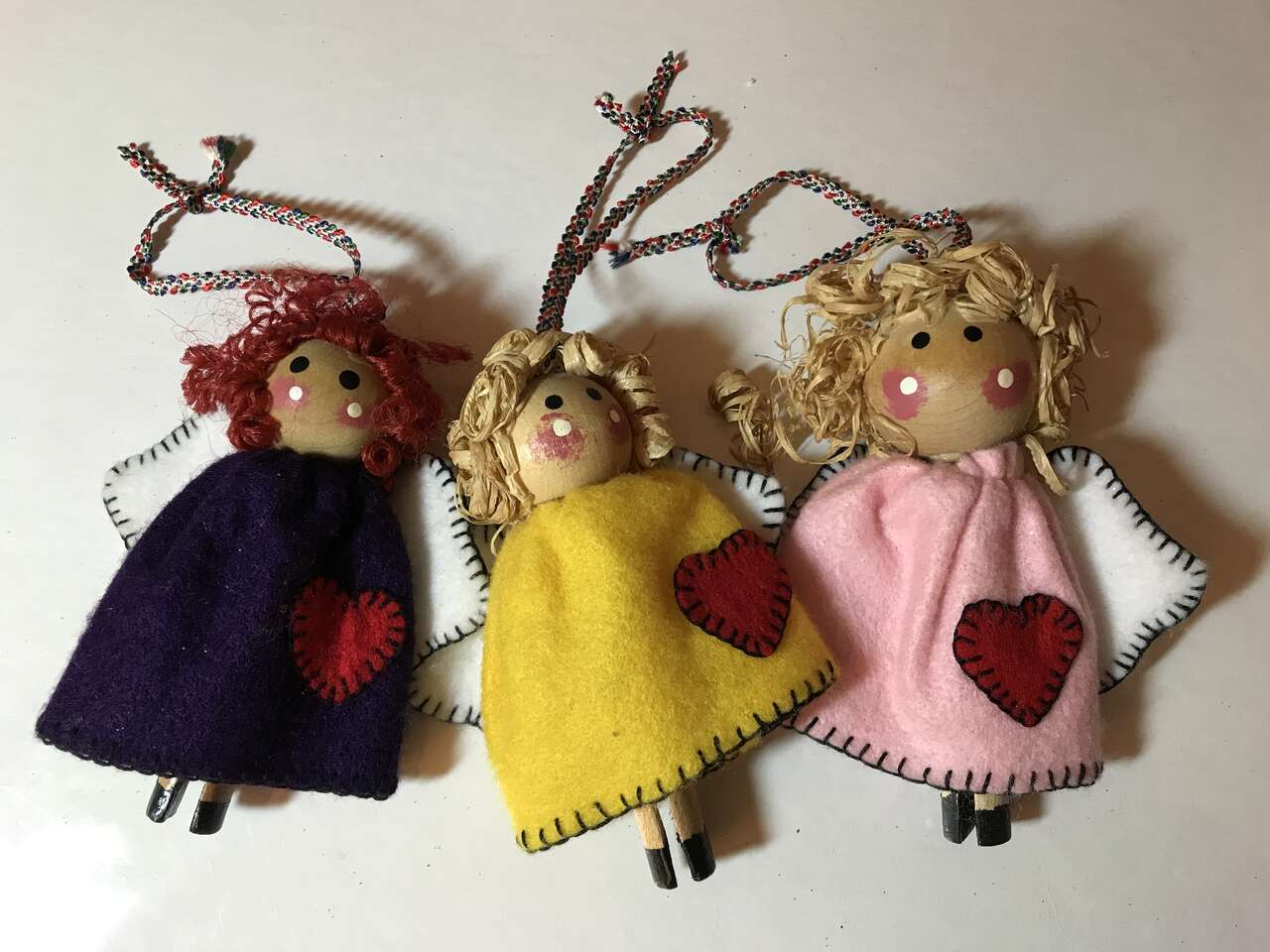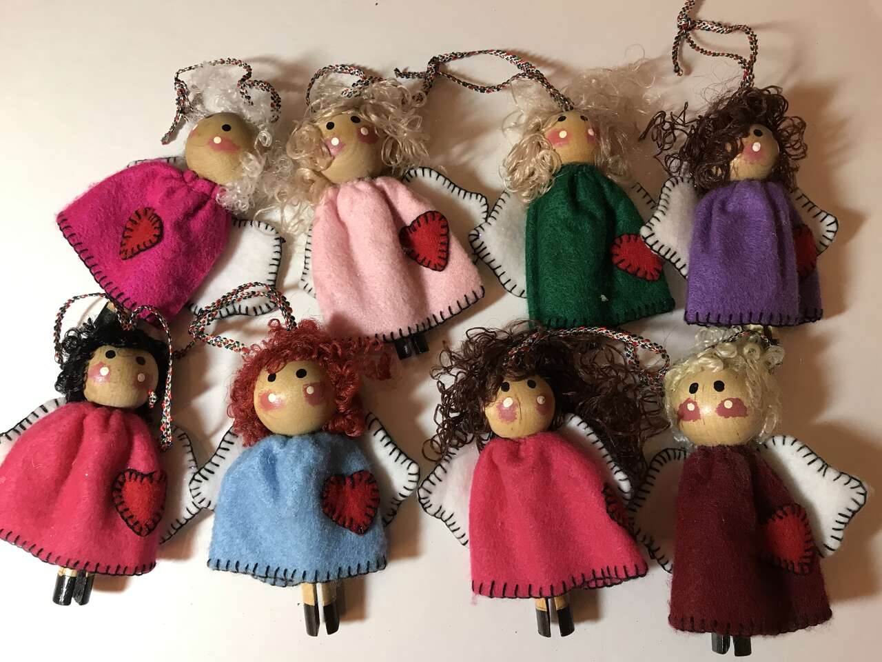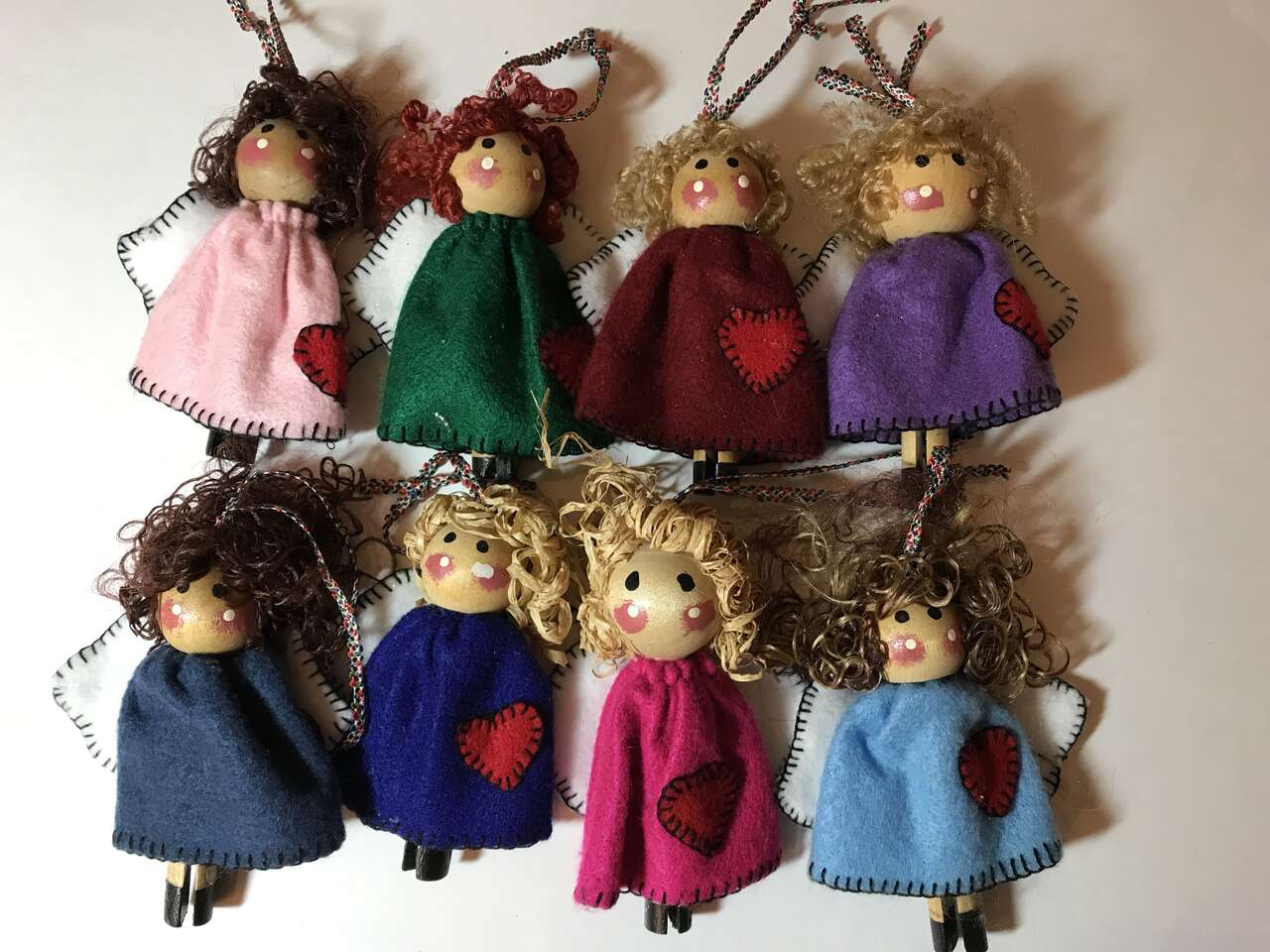 Pictures 29-32 - Lot of 19 Angels, Felt Clothes and Wings, Wood Head & Clothspin wood Body, $10.00
