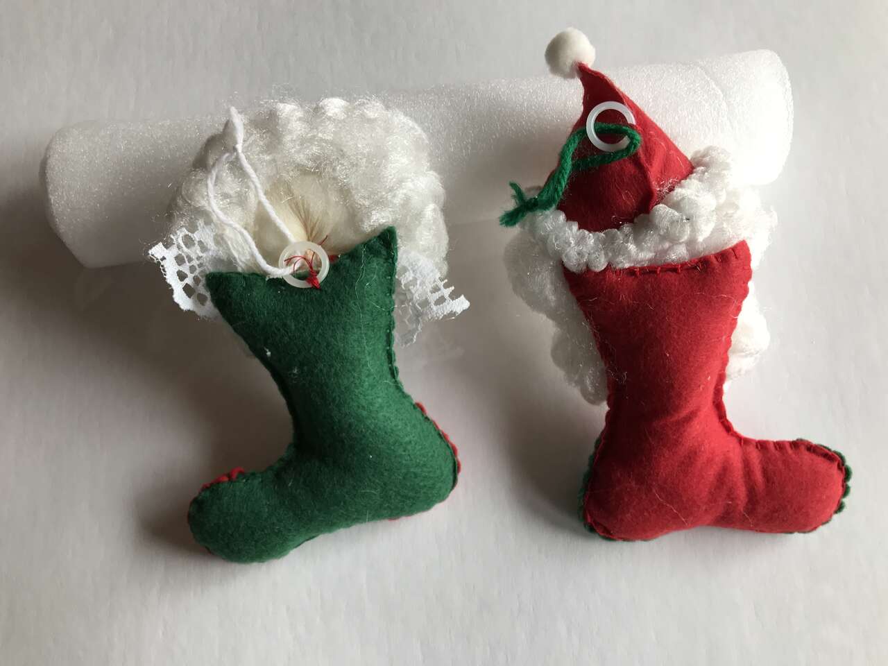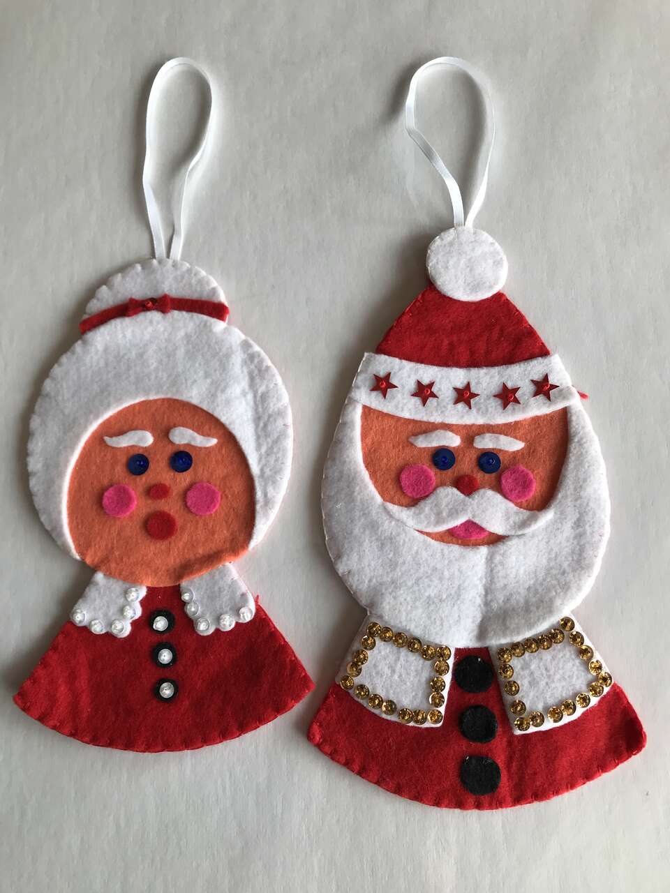Picture 5-6 - Mr & Mrs Santa flat felt ornaments free with the purchase of Picture 6 - Mr & Mrs Santa Cross Stitched stuffed ornaments, each ornament is $10.00