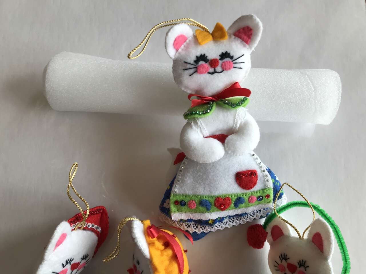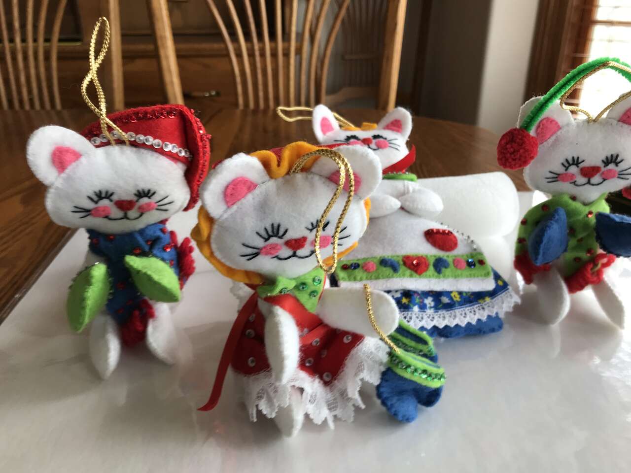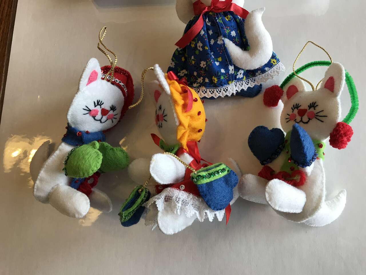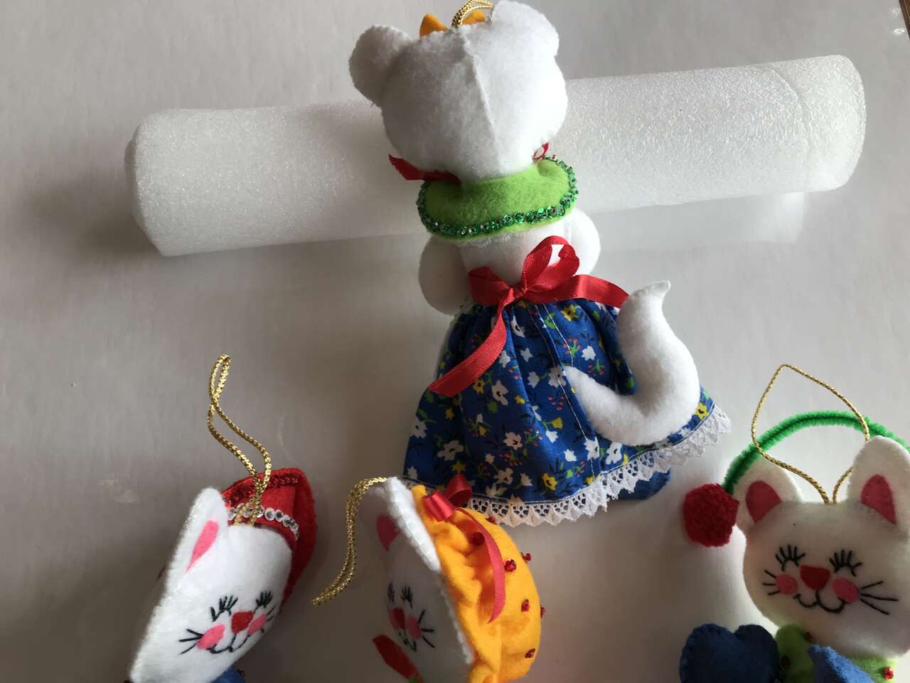 Pictures 7-10 - The 3 Little Kittens Had Lost Their Mittens & Moma Cat felt stuffed ornaments, each ornament is $10