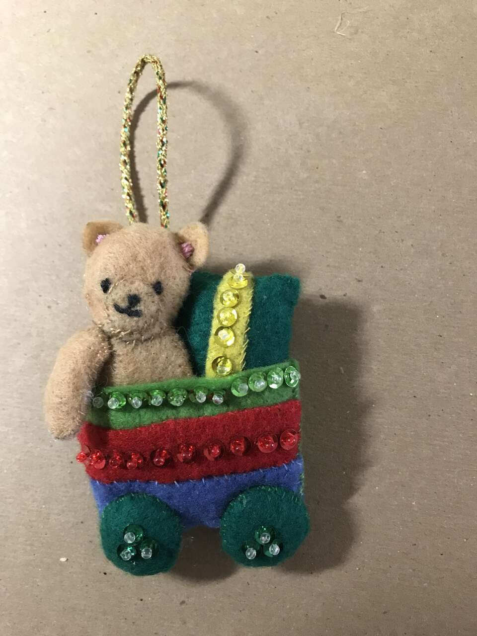 Pictures 11-12 - Handmade Felt Stuffed Ornaments, Bear in Train Car and manufactured Dotted Pony, $5.00