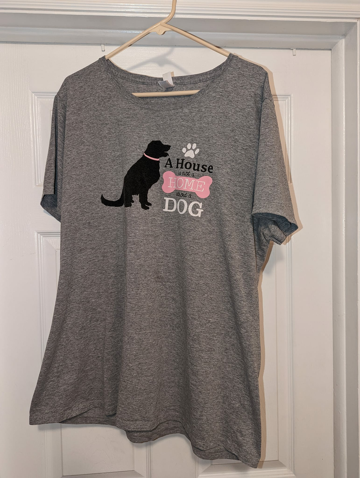 "I swear this will be the last dog I will bring home/and I'm good at swearing" Size: XL (Unisex) $10
