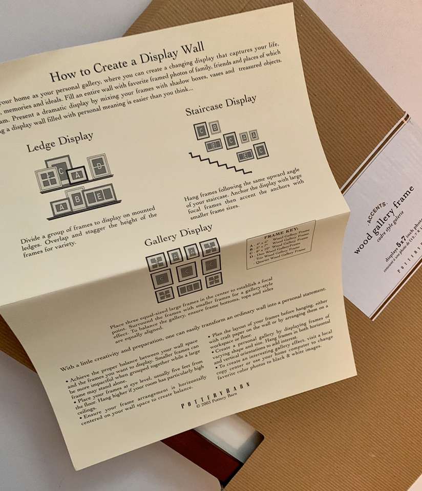 VenmoPottery Barn Wood Gallery Single Opening 5 x 7 (11 x 13 Without Mat) brand New in box with display suggestions & instructions. Tiny ding on one edge -See 7 pictures above. Message me if you’re interested in purchasing