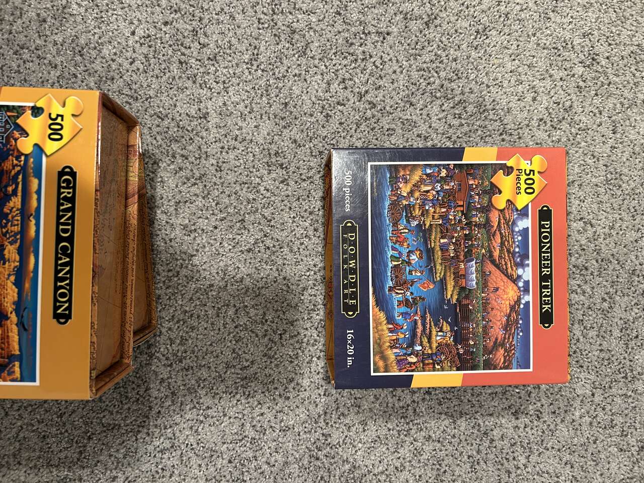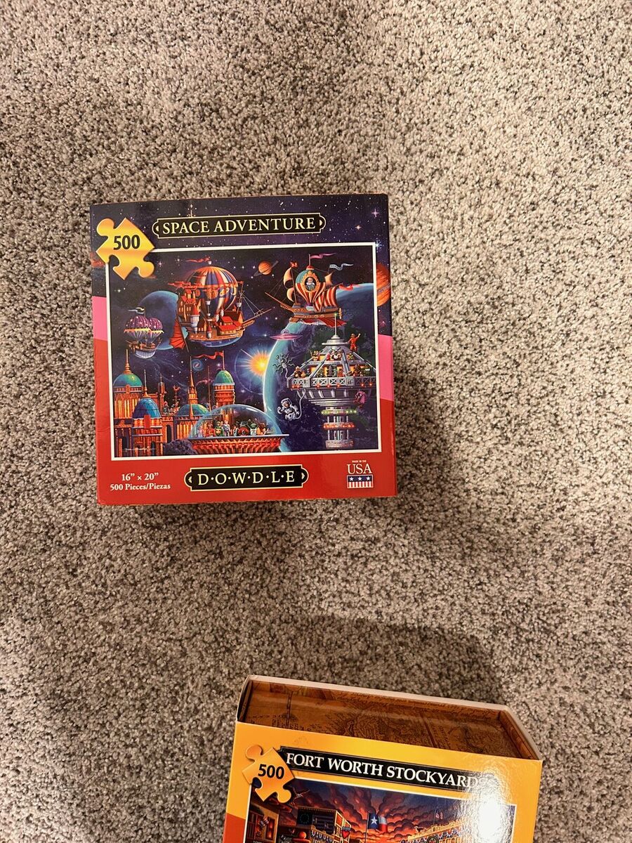 Assortment to choose from (see list below). Puzzles available are either new or used and are identified in the list below. New puzzles have bags that haven't been opened. Used puzzles have been previously assembled and recounted to verify that all pieces are included. Puzzles come with the art/picture insert. Some outside slip covers may show some shelf wear. Puzzles are priced as marked. Discounts available for purchasing multiple puzzles. Comes from a smoke free/pet free home. (Accept cash or Venmo only, pick up only)