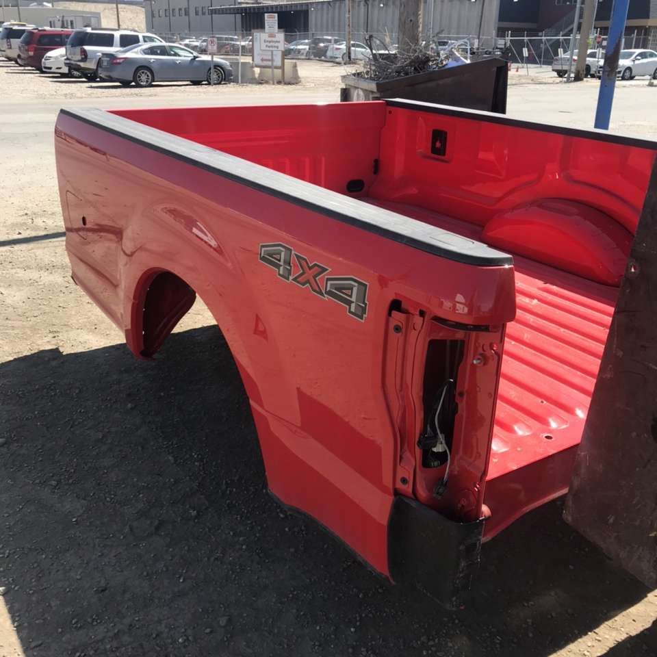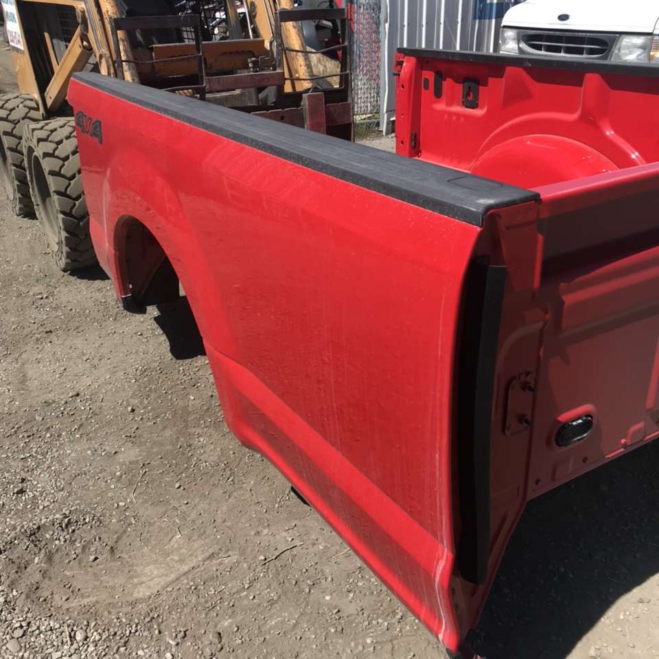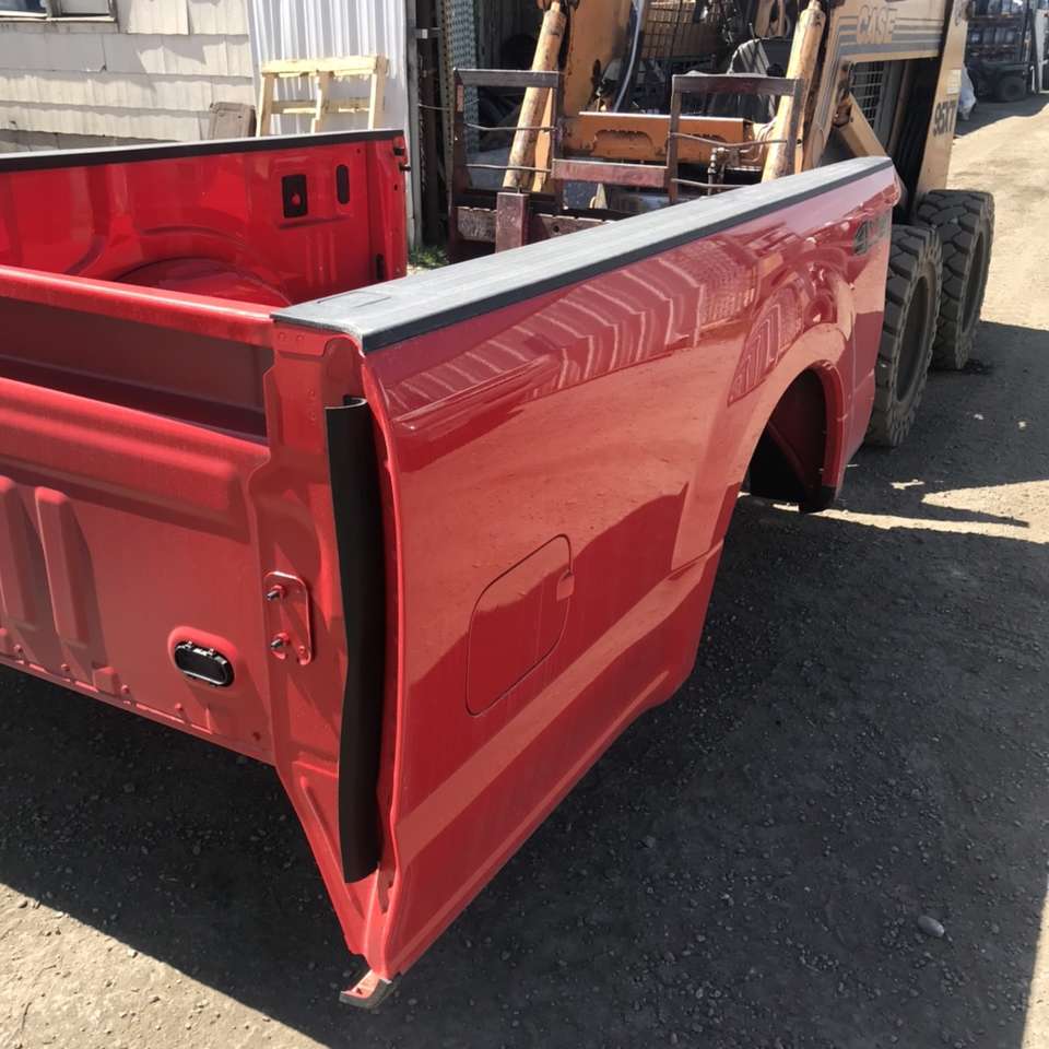 This bed was pulled off from a brand new truck to install a service body. It fits 2017-2021 Superduty F-250 and F350 long bed (8 foot) single wheel. The price is $540 for the red, $540 for white no liner. Price is less gate or lights. Message with gate style for pricing. Chrome bumpers without sensor type are $300. No other beds available unless listed (no short or older ones) call or text Bruce with questions 801-450-3977