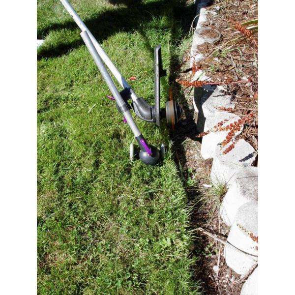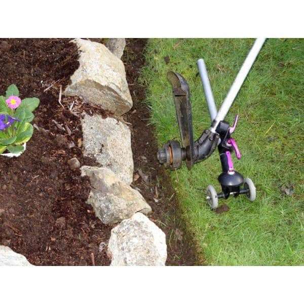 Here's the perfect accessory for your weed trimmer. The Trimmer Trolley clamps on to the shaft of virtually any trimmer, then adjusts to provide professional results for edging, trimming and mowing. Takes the load off your back muscles and the rolling support guides your trimmer to provide superior results, perfectly consistent throughout your yard and garden. Weighs only 1 lb. Mounts on straight or curved shaft trimmers with a 7/8 in. to 1 in. Dia shaft. More than just wheels, this is a complete solution, transforming your weed and grass trimmer into a very versatile grass mowing machine, grass edger, trimmer and a lot more. The patented heavy duty design allows for an infinite number of angles and cutting positions to be utilized, maintain perfect balance and control plus reducing the weight for the user while producing results that will make any lawn appear to have been professionally manicured and landscaped. The Trimmer Trolley will easily mount on straight or curved shaft trimmers with a 7/8 in. to 1 in. Dia shaft. Echo, Poulan, Redmax, Toro, Troy Built, Homelite, Ryobi, Stihl and Sears are just a few great trimmer options. The Trimmer Trolley's unique design helps to reduce back fatigue, which helps to reduce back, shoulder and neck pain so common with yard work and trimmers Simple, easy, light weight and rugged, designed and built for many years of lawn care and trimming service Trimmer Trolley attachment converts a standard line trimmer into a multi-functional tool, turning a line trimmer into a perfectly balanced edger, mower or trimmer Lawn edging can be preformed using dual wheels for straight and curved lines or in caster mode using a center single wheel for free flowing curves, the large heavy duty wheels can maneuver on nearly any type of terrain