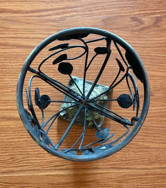 6” in diameter x 10” high metal/rod vase/home decor/ vase or bowl holder. Can be part of any elegant decor. $10