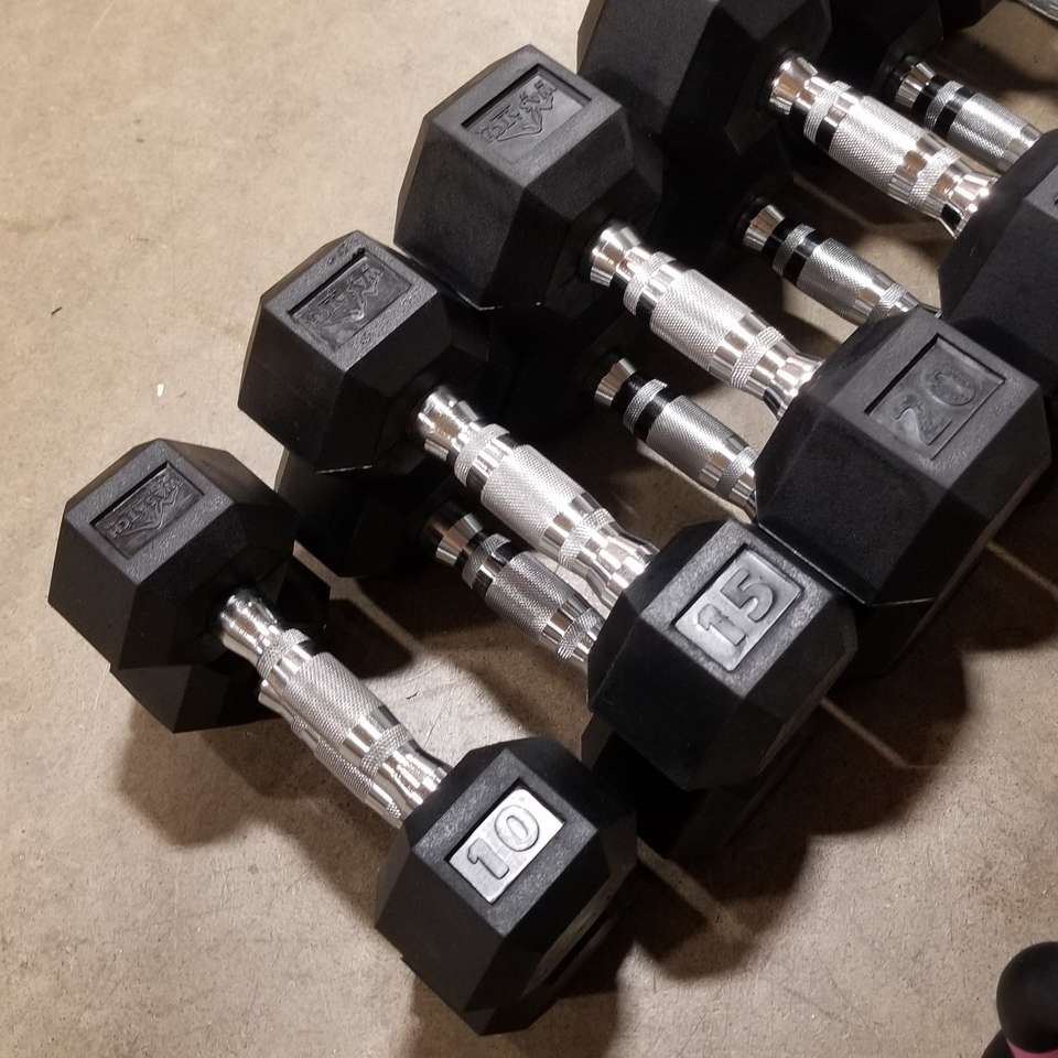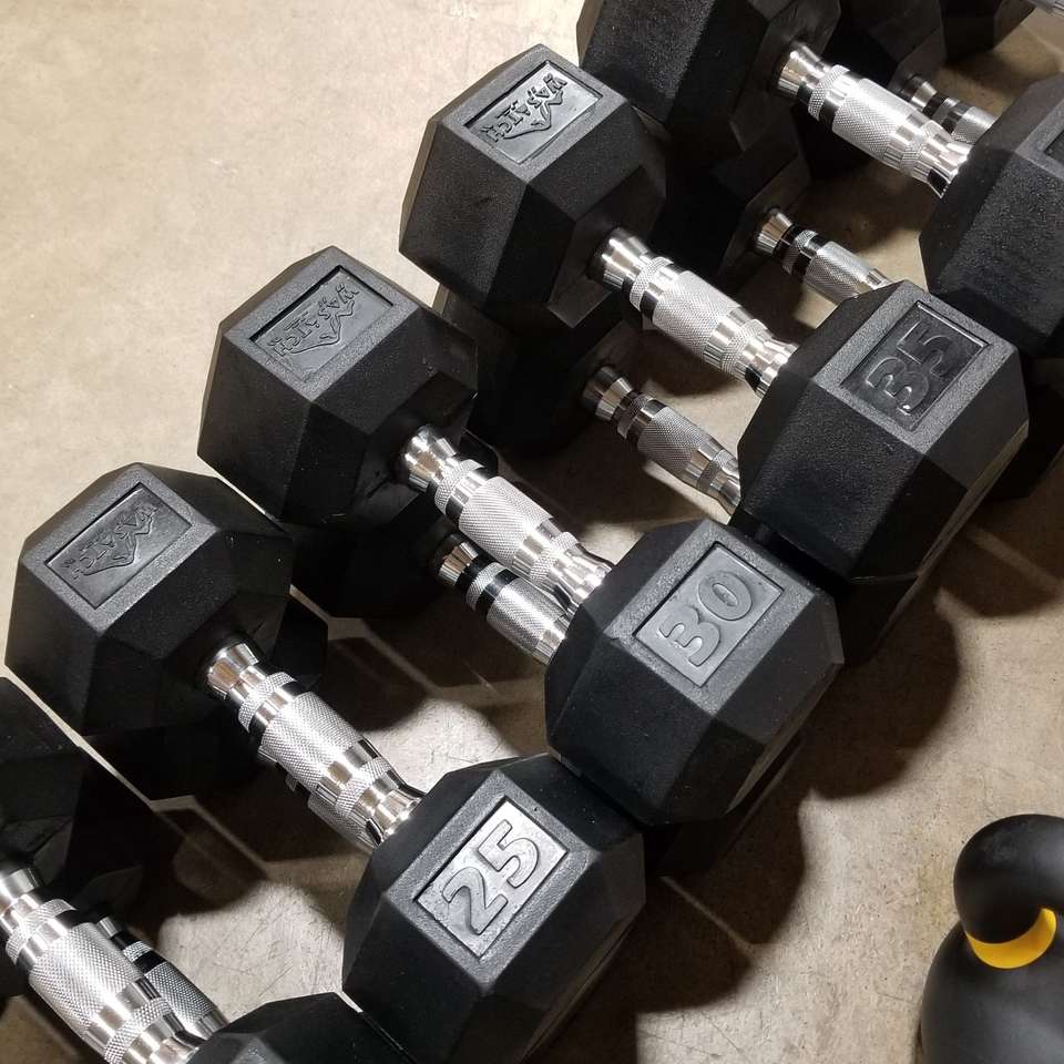 DBHC-G34 / KBOE-G13: Dumbbells 10-15-20-25-30-35-40lb and Kettlebells 8-12-16-20kg - $705