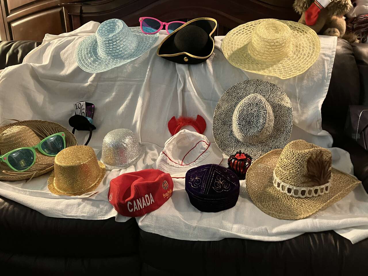 VenmoCOSTUME HATS: $2 TO $8. NEW Gold Glitter or Silver Glitter leprechaun hats $2 each; Yellow & Blue Summer Sun Hats $5 ea. Straw Beachcomber hat $8; White with Red piping Fishing or Summer Hat, $2. Pirate or Colonial 3-Cornered Hat $5, Alice in Wonderland Mad Hatters Mini Hat $5; Queen of Hearts Clip-on Mini Hat $4. Canada Red 30's hat Styling. $3. Western Hats $5 each. Purple Velvet with gold braid Hat brought from Russia $8. Red Devil's Horns Headband $2. 2 Pairs of Jumbo Sunglasses $3 each. Most are in Like-New condition. In Sandy. Cash/Venmo. 801-201-5350.
