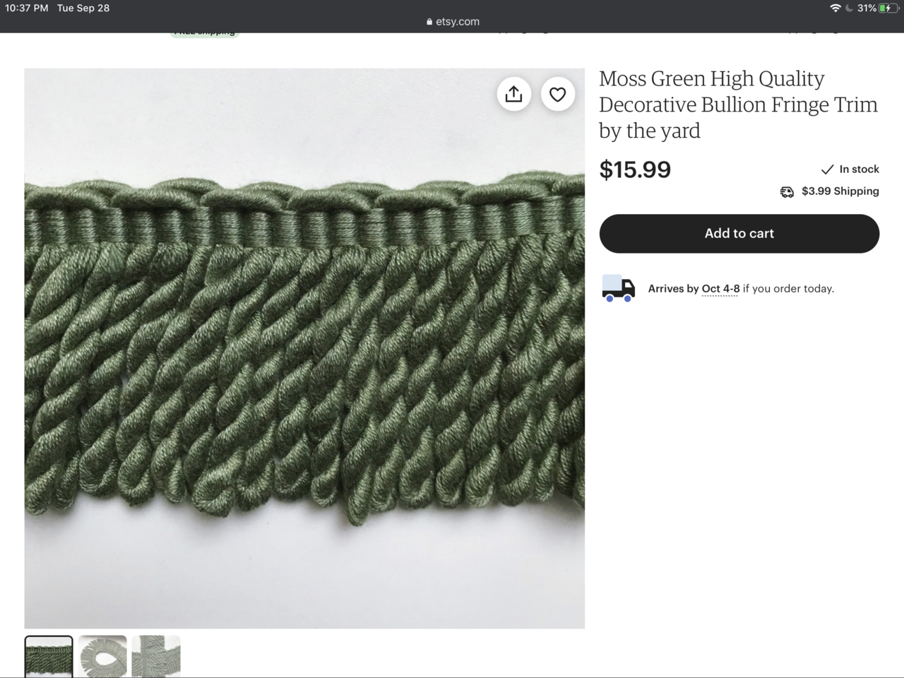 This normally sells from $14-$18 per yard at the median price of $16 per yard it would be about $104 for this much. This is completely brand new, never used. I am selling it for much less. Wood holder for display only.