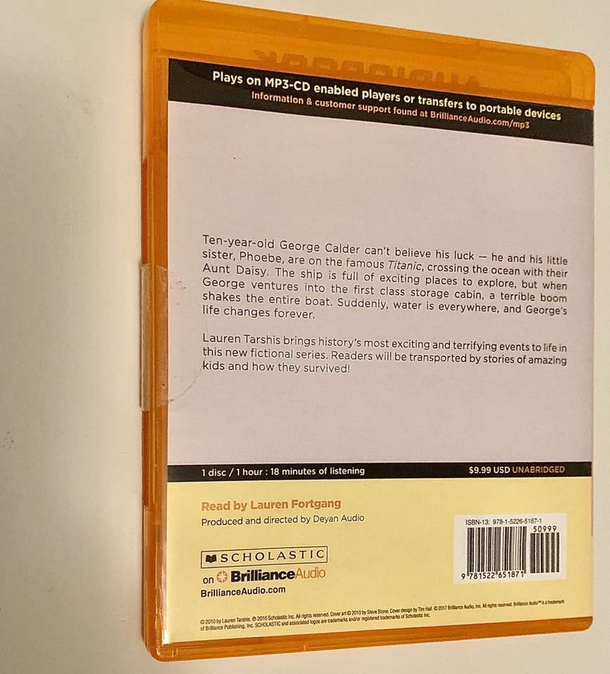 Unopened new MP3 on CD Audiobook, I survived the Titanic. Text if you’re interested.