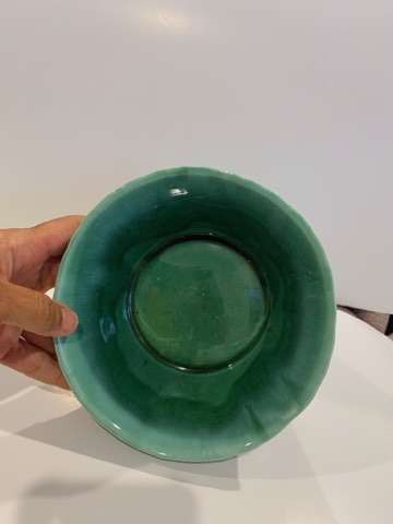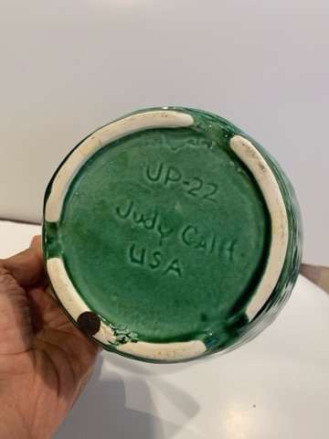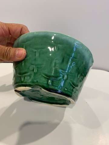 MCM Judy of calif jp-22 green glazed basket weave design planter/pot. 3” high 6.5” wide