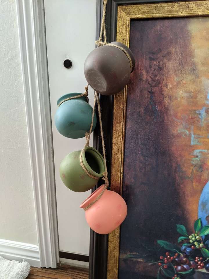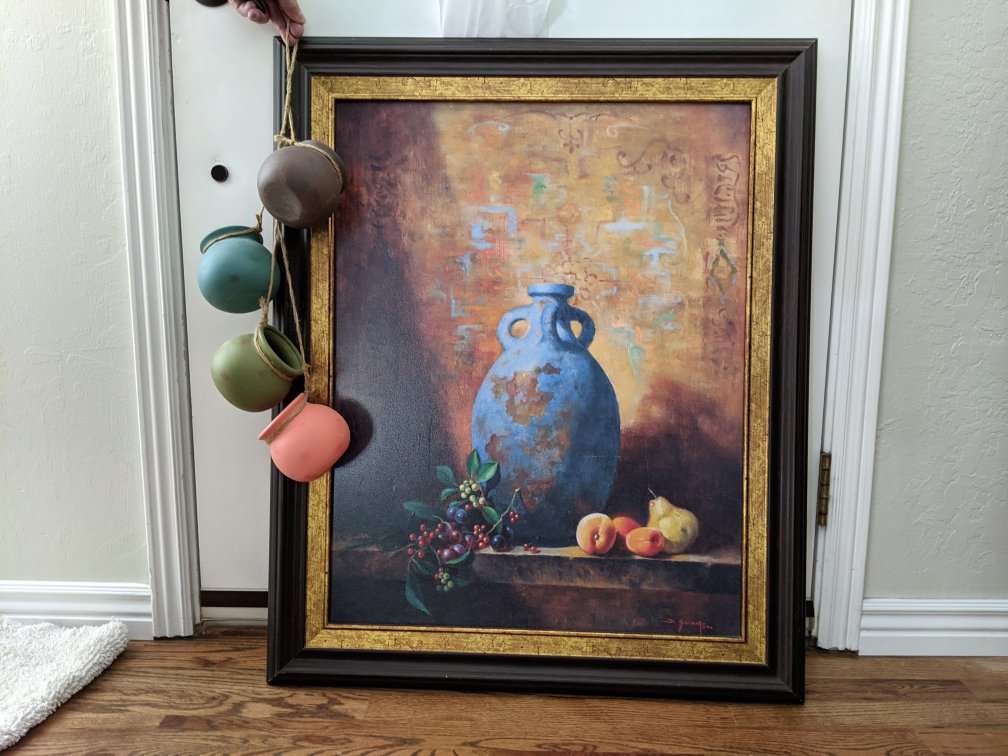 Art measures 28 inches x 35 inches and has a custom frame. Includes coordinating hanging clay pots in pictures. Looks amazing hanging next to each other. I love this but it does not match my decor so selling here. Call or text any time. Cash only please. Thanks!