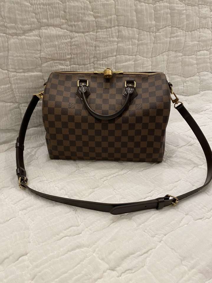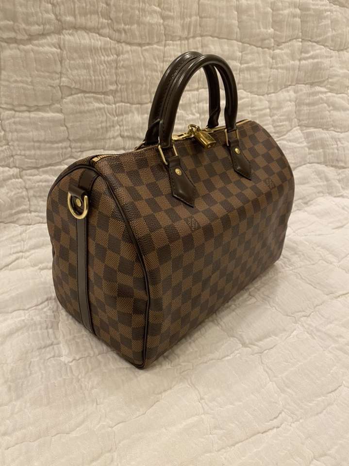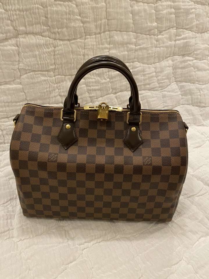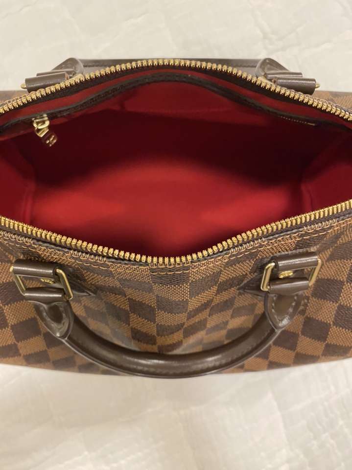ZelleThis timeless handbag is crafted of Louis Vuitton’s signature Damier coated canvas in brown. The handbag features dark brown rolled leather top handles, adjustable shoulder strap, matching trim, polished brass padlock and two keys. The top zippers open to a rouge red fabric interior with a hanging pocket. Only used approximately 5 times. Dust bag, LV blue gift ribbon, LV gift box, all original paperwork and detachable felt purse organizer included. Retails for $1,890.00 + tax. Designer ID #: SD3126 Year: 2016
