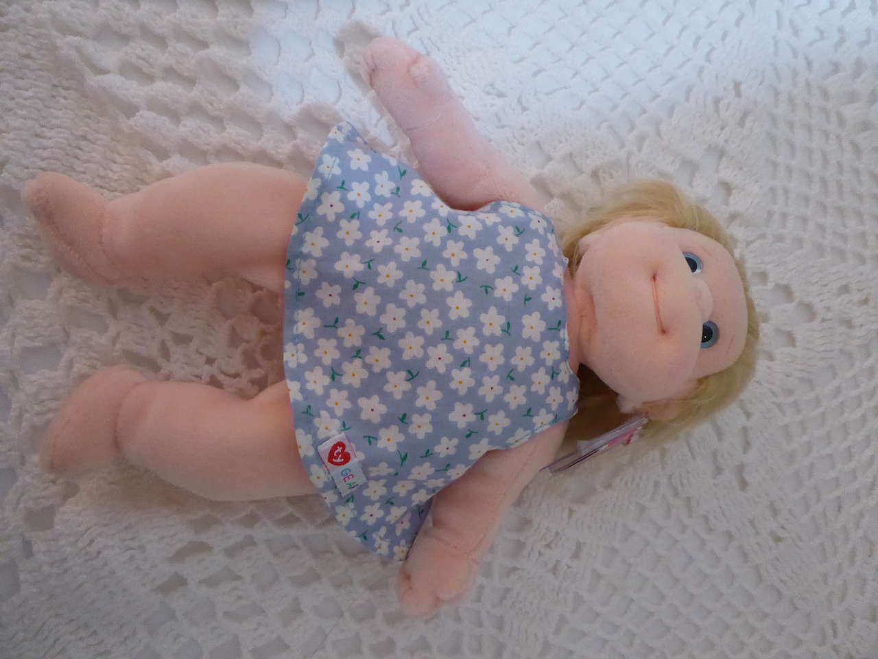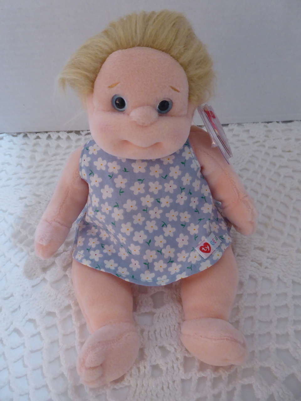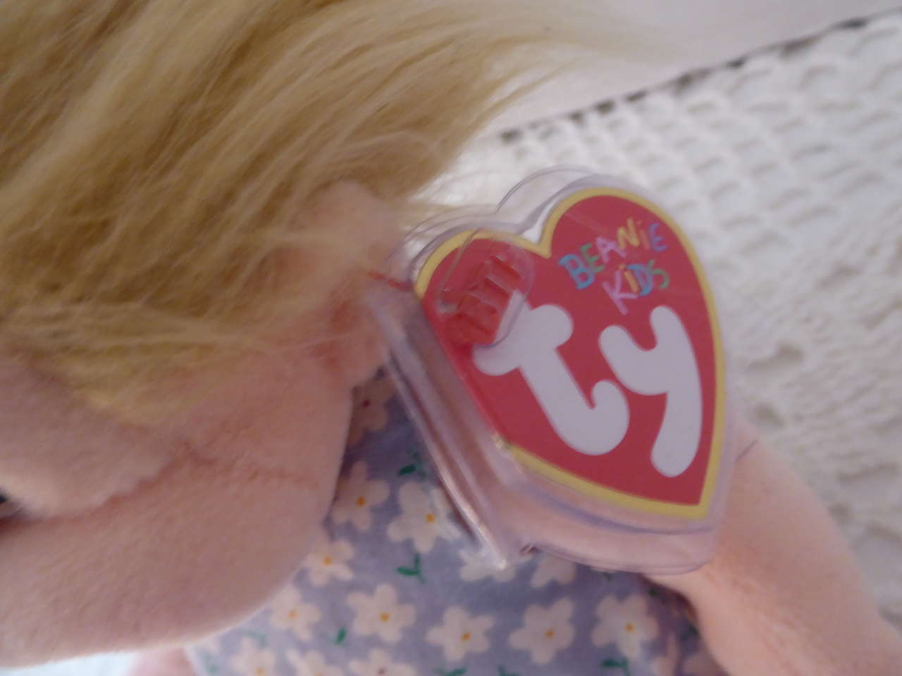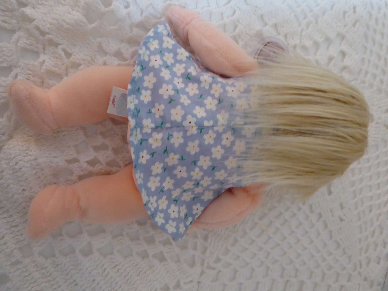 She has soft brushed fur type hair that you can comb straight or have it up and wild looking, also. She is just so cute!!!
