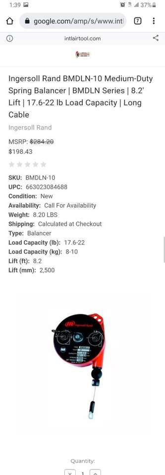 Ingersoll Rand BMDLLN-10 Medium-Duty Spring Balancer | BMDLN Series | 8.2' Lift | 17.6-22 lb Load Capacity | Long Cable