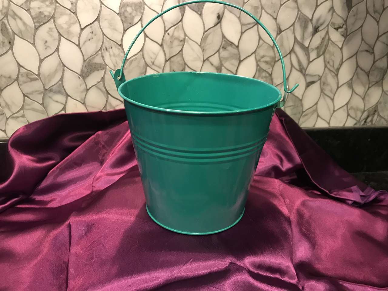 VenmoGREEN TIN BUCKET 5.5 inches tall w/o handle. 9 inches tall With Handle. 7 inches wide at to. $4 Cash/Vemno. See both photos. In Sandy. 801-201-5350. See other items for seller #427883.