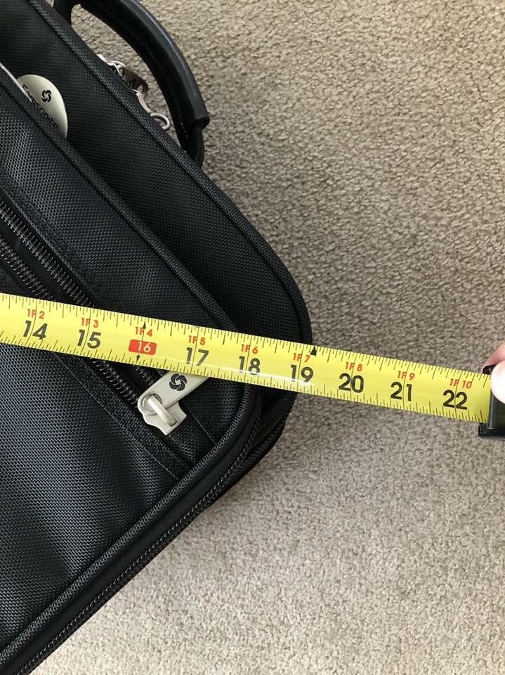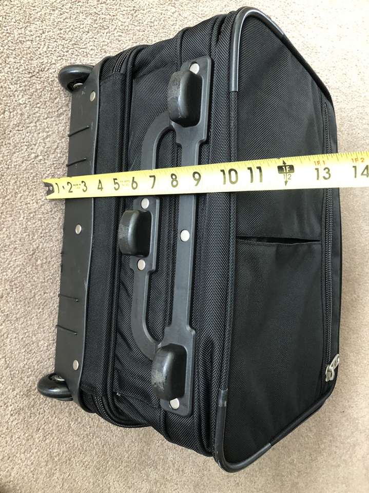 Measurements are in the images. This bag is carry on size.