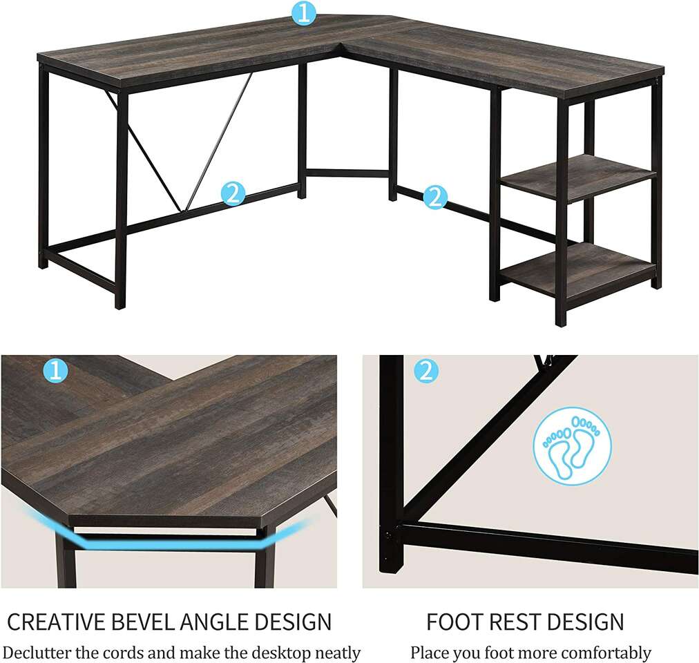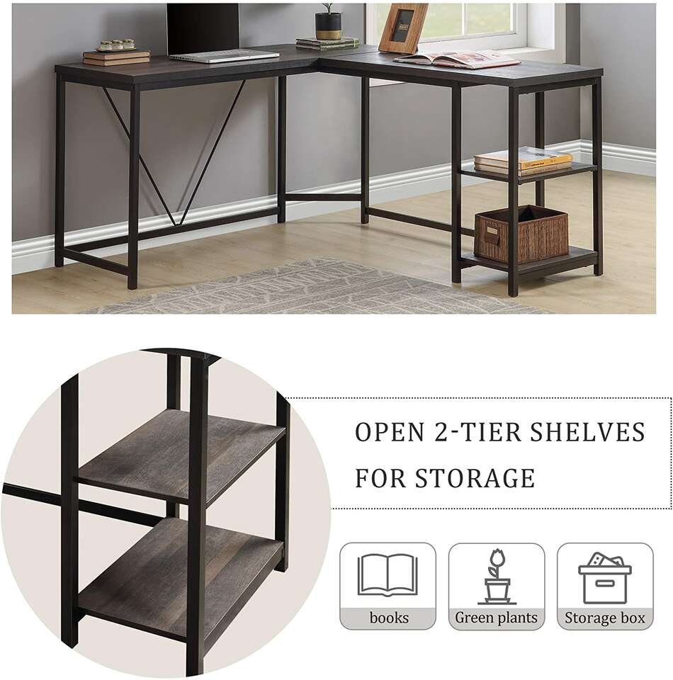 Storage Shelves: Two built-in 2-tier Storage Shelves, which provides ample additional storage space for your office accessories and documents while greatly influencing a clean and organized workstation.