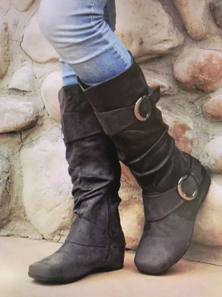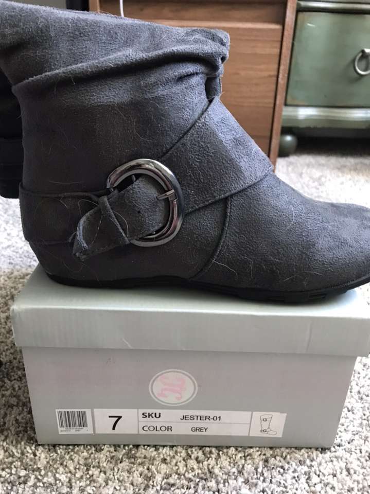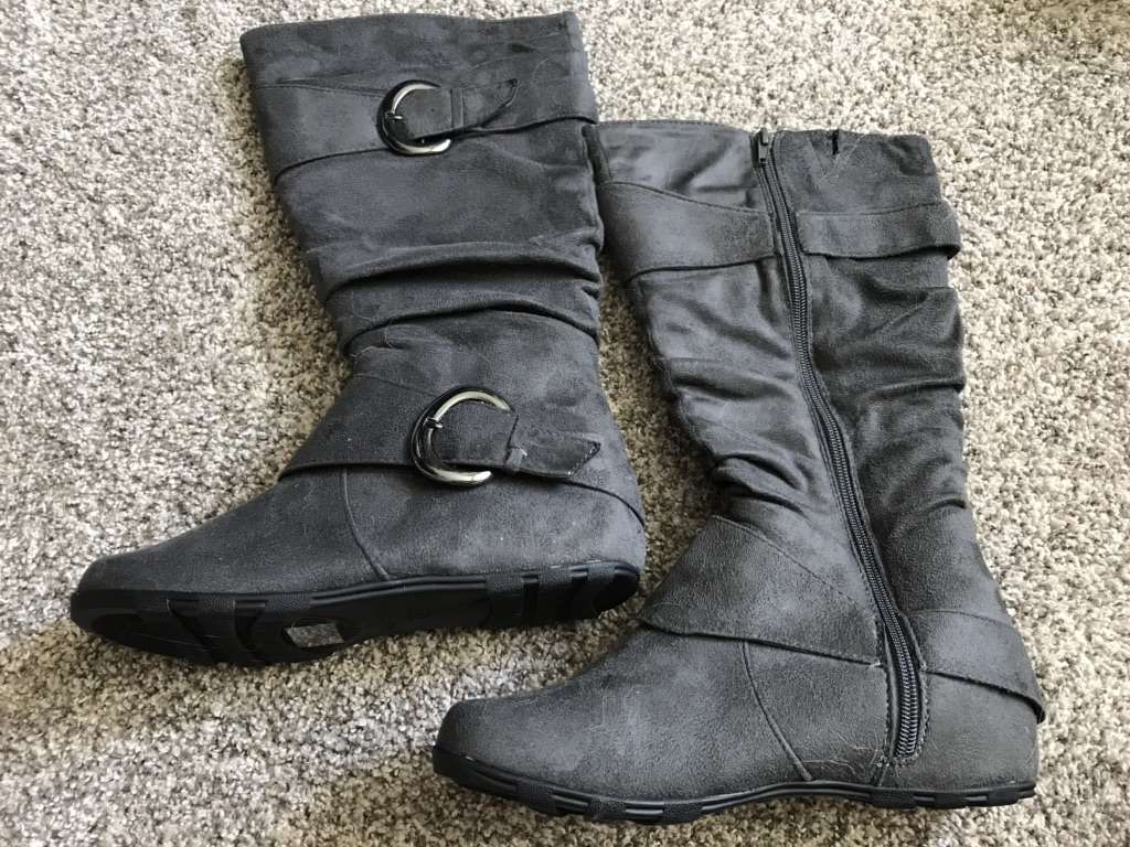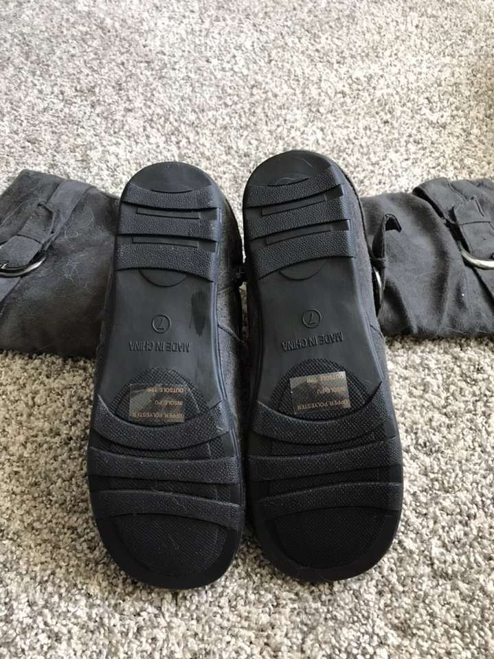 Never worn Color Gray Slouch style Buckle strap details Knee High 1/4 “ heel Text if interested