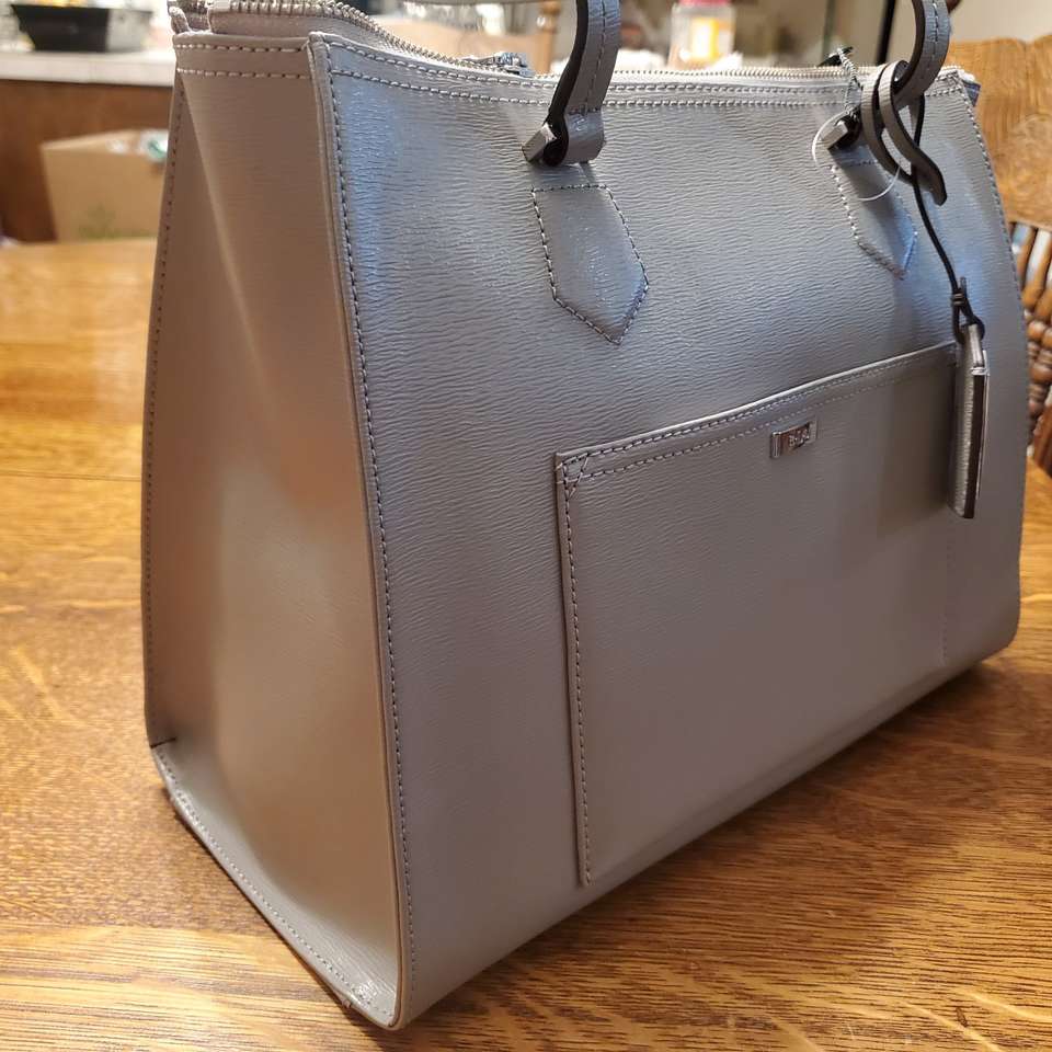 Bran New beauriful Ralph Lauren Lowell Satchel in Dove Grey. Zippered top, zippered inside with pouches. & outside pocket in 100% leather exterior. Comes from smoke free, pet free home. Call OR text.