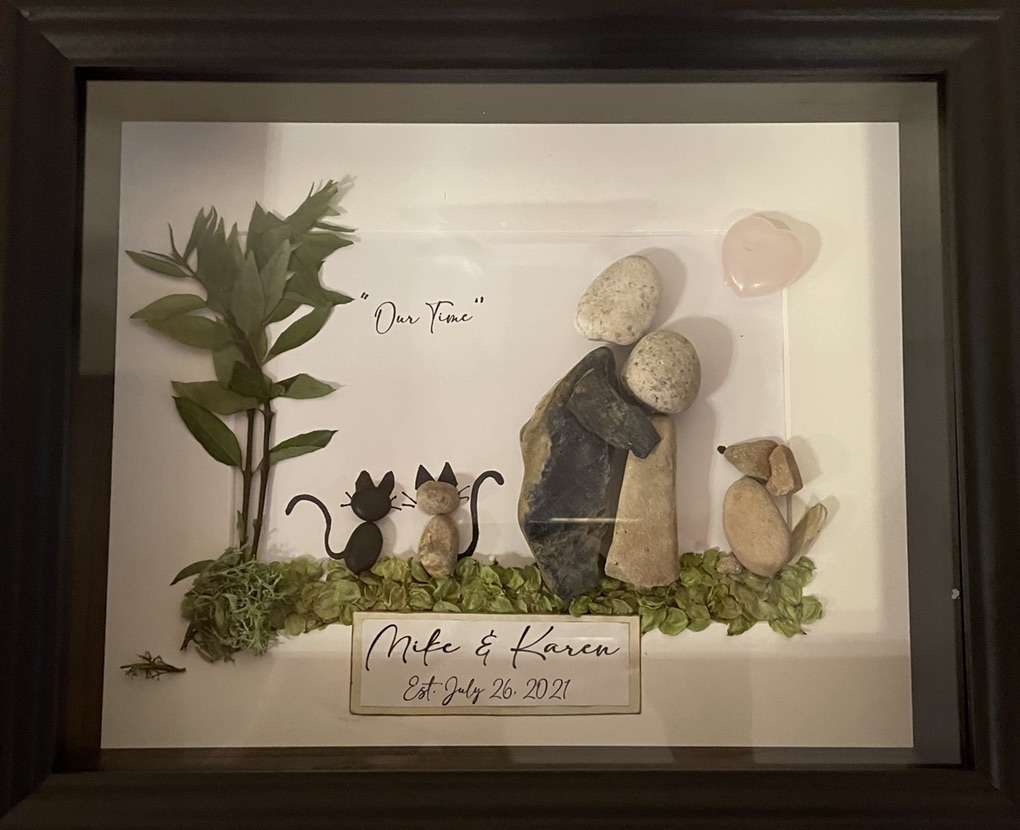 Here are just a few examples I have made for other clients. You send me a picture of your family, pets, whatever… and I will make a one of a kind gift for you. -You can pick the saying\