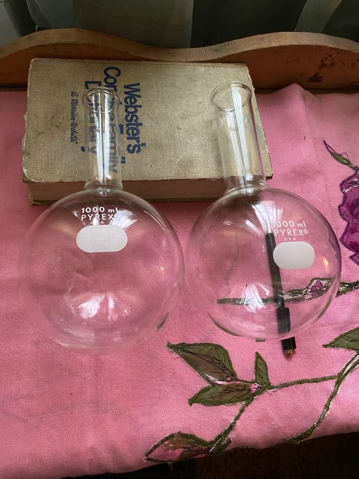 pyrex 500 ml 2 round bottom $8 each.... pyrex 1000 ml have 1 round bottom $10 ,,,,, text if interested