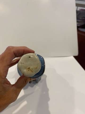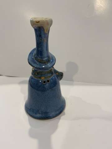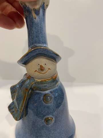 7” blue pottery ringing snowman bell. No chips or cracks