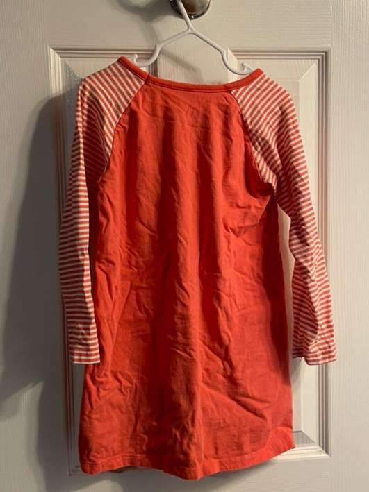 Girls Cotton Long Sleeve Casual Striped Jersey Dress. It’s a reddish/orangish color with the cutest unicorn on the front. Please see the sizing chart in the last picture. This dress is a 5T.