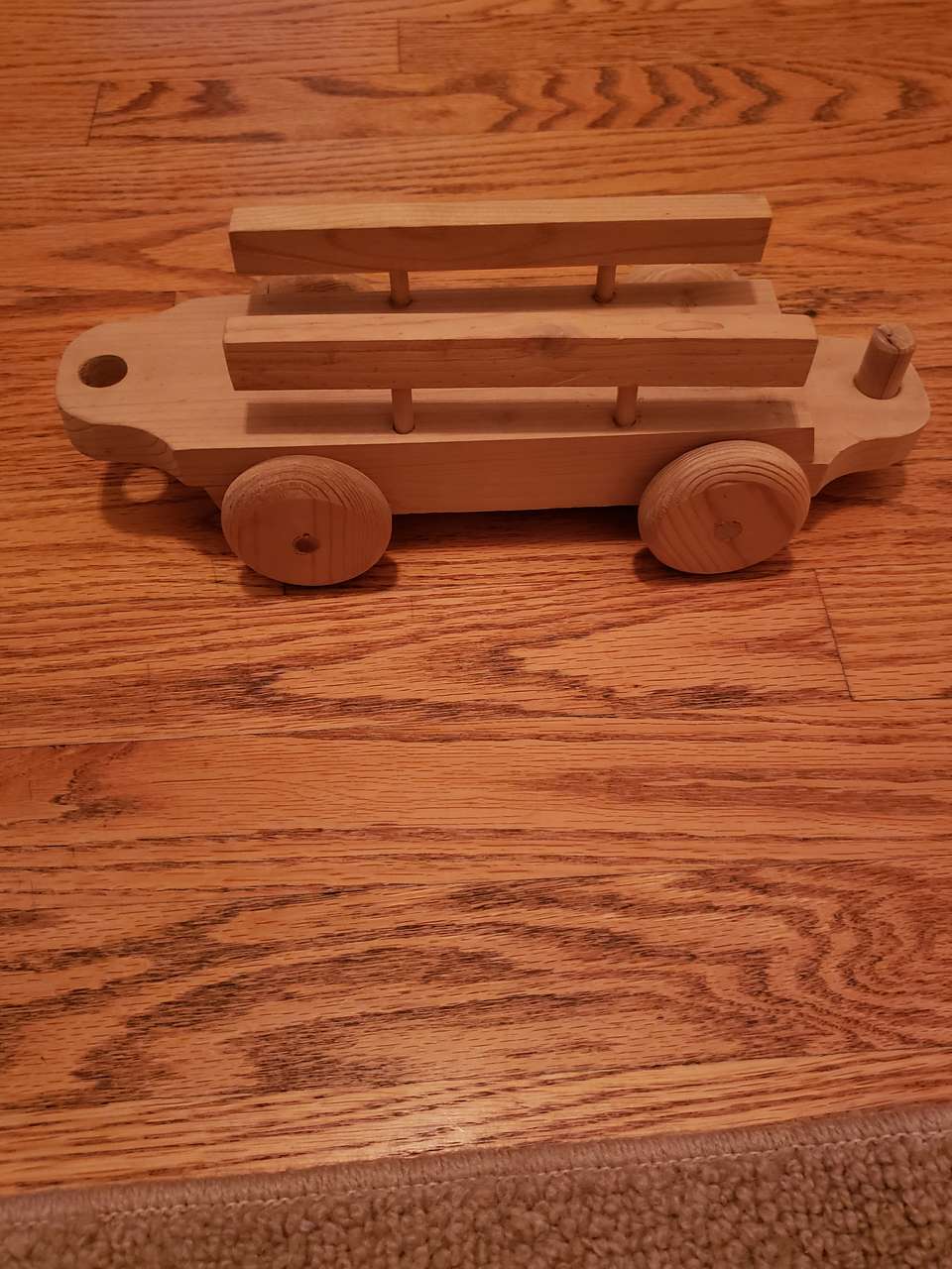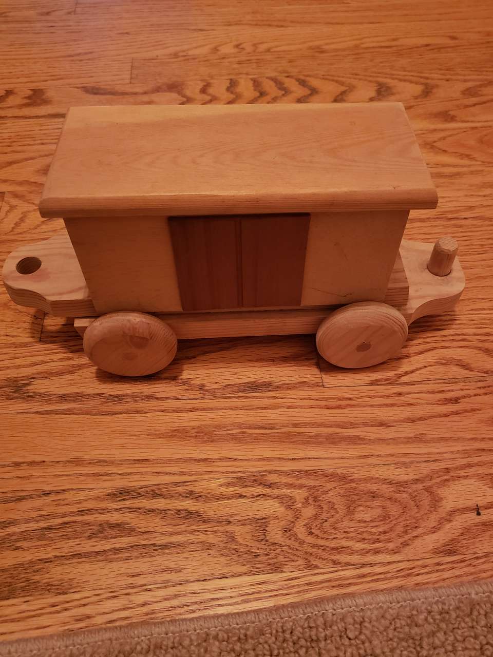 I have this cute wood train that I had made for my boys and I was always going to paint it but I just never got around to it and my boys arent even into trains, so I thought someone else might enjoy this. you could even put it around your christmas tree. Each car comes apart and you can hook it anyway you want, its got all working wheels and its so well made...