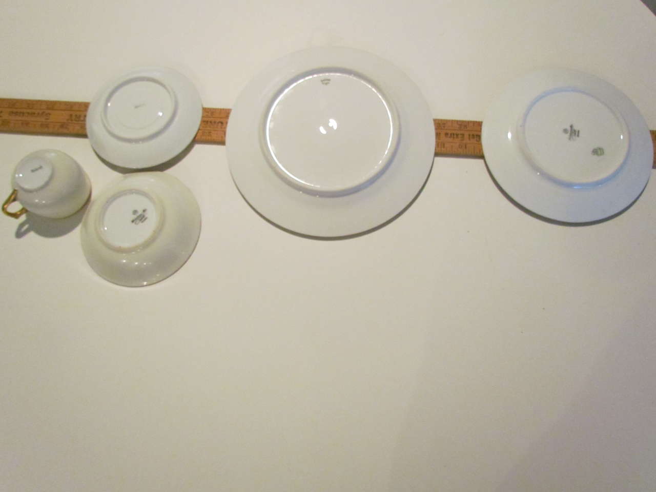MIXED Antique Haviland France / Peeress Bavaria / Nippon & Noritake Japan 81 PEICES A VINTAGE WIMSICAL COLLECTION & TABLE PRESENTATION. These dinner ware item and serving collections were always mixed in presentationand placement at the table and received many complimentsthrough the generation of my families owner ship. If you have a last name that starts with a D your really in luck !! All descriptions are approximate as to count and country of origin for several item are simply one of a kind. the white cups marked with the Old English Script of the letter D hall mark hold approximately 2/3 of a cup ofliquids while the soup bowls hold just about 14 ounces of liquidsto below the rim. Count Hall Mark D items: White with gold rim and hall mark count 11 cups_makers mark_Germany. White with gold rim ( no hall mark ) 5 1/2 saucersfor cups count 12 _ makers mark_Germany. White with gold rim and hall mark 10 serving plates_count 11_makers mark_Haviland France. White with gold rim and hall mark 7 3/4 side plates_count 9_makers mark_Hulschenreulher -Selb Bavaria. White with gold rim and hall mark 5/1/2 soup bowls_count 12_makers mark_Hulschenreulher -Selb Bavaria. White with gold rim and hall mark 13 oval length seving plater_count 1_makers mark_Hulschenreulher -Selb Bavaria. The other items being a count of 26 serving items are mostly - makers mark_ Noritake / those being the items with golden hue with a woodland themes, others are makers mark_ hand painted Nippon. Pictures are of the actual item for sale, I have more pictures and can furnish additional information upon request.