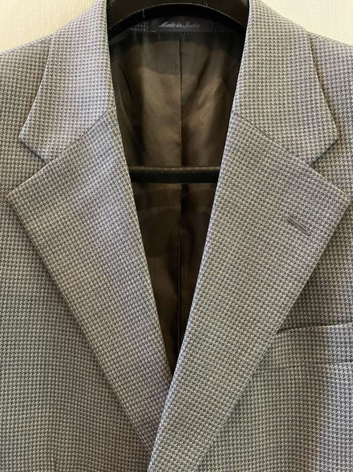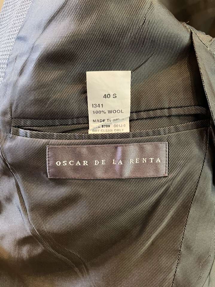 Oscar Delarenta Wool Jacket 40S Grey 100% wool, like new, textured fabric.