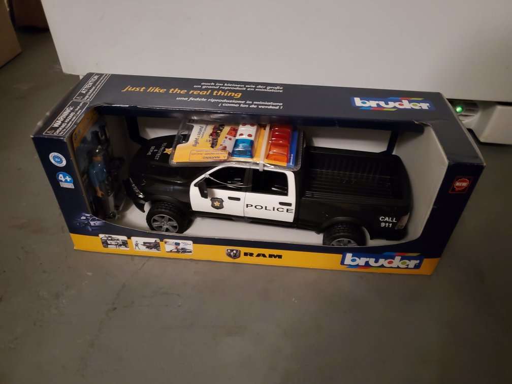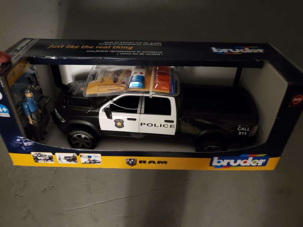 This is a brand new Bruder Ram Police Truck. Comes with the extra light set to swap colors. Brand new this costs $85 on most sites. Get it for a steal. Call or text. Venmo or cash.