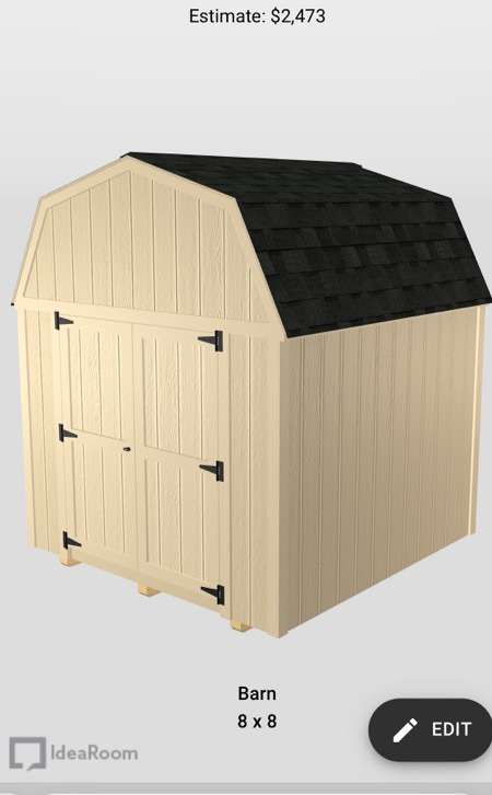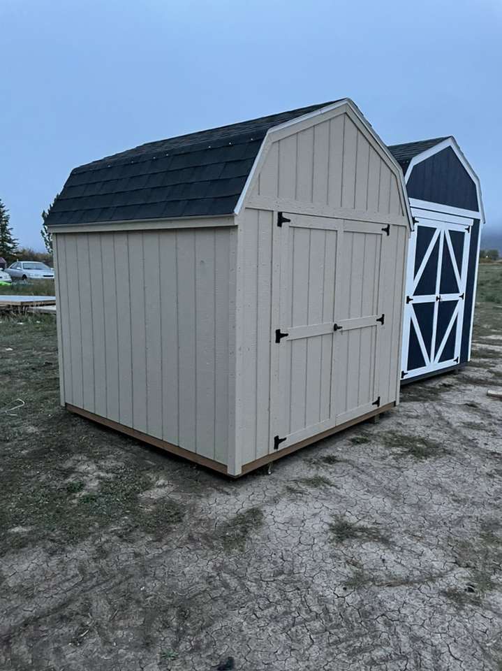 8x8 barn style shed 2x4 construction Treated floor frame on skids Architectural shingles Keyed door handle Delivery may be extra