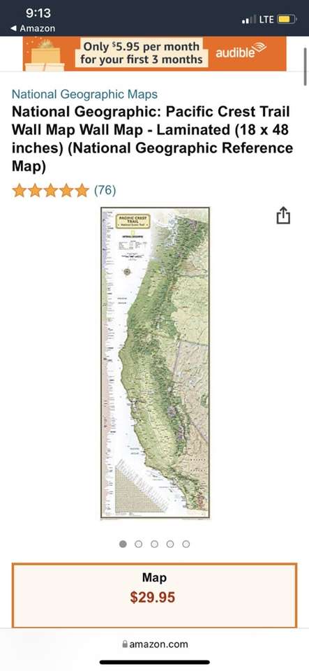 National Geographic: Pacific Crest Trail Wall Map Wall Map - Laminated (18 x 48 inches) (National Geographic Reference Map)