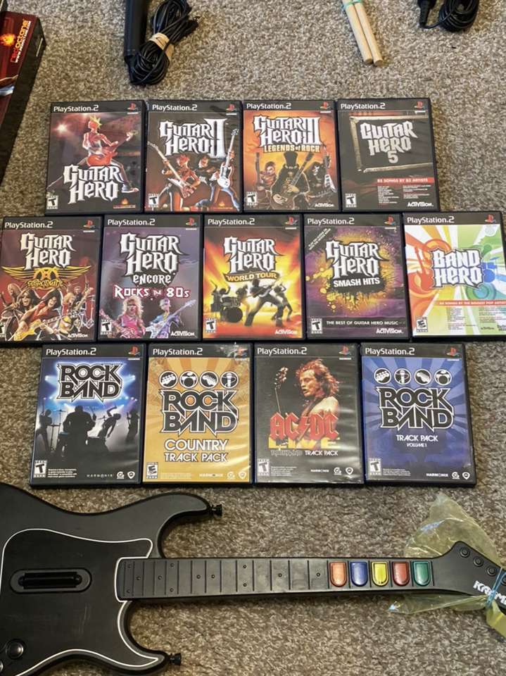 Rock Band $25 Rock Band 2 $30 RB TP Vol 1 $25 RB TP Vol 2 $25 RB Country $30 RB Metal $20 Band Hero $25 Guitar Hero $25 Guitar Hero 2 $25 Guitar Hero 3 $30 Guitar Hero 5 $35 GH Aerosmith $25 GH Rockin the 80’s $30 GH World Tour $35 GH Metallica $60 GH Smash Hits $60