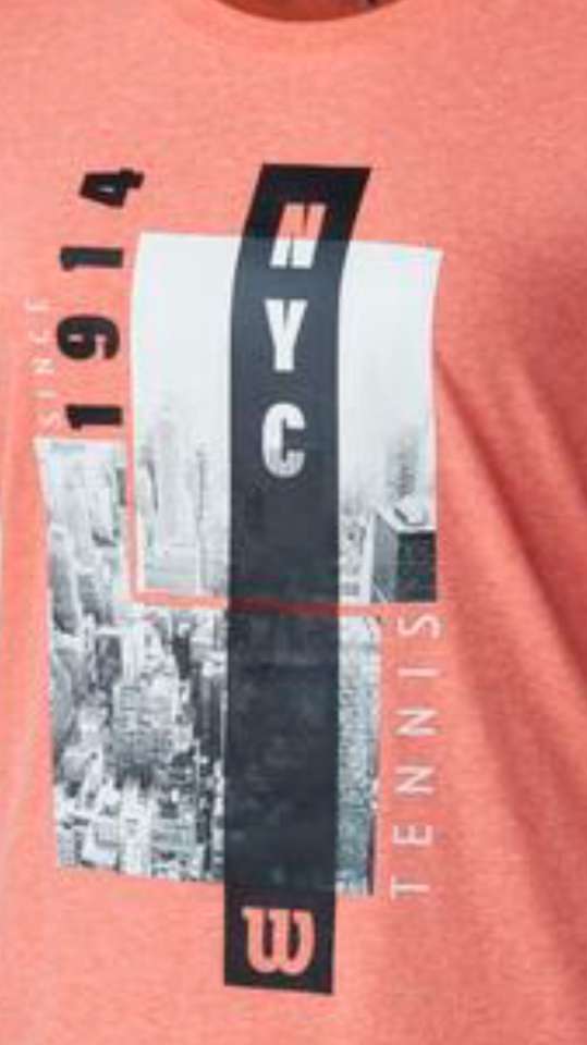 “Represent one of the top tennis meccas in the world when you sport the NYC Aerial Tech Tee. Showcasing a piece of the iconic New York City skyline across the front chest, this tee comprises a polyester and cotton blend that feels generously soft to the touch. Shirt also effectively wicks moisture to preserve comfort in the heat of training or competition.”