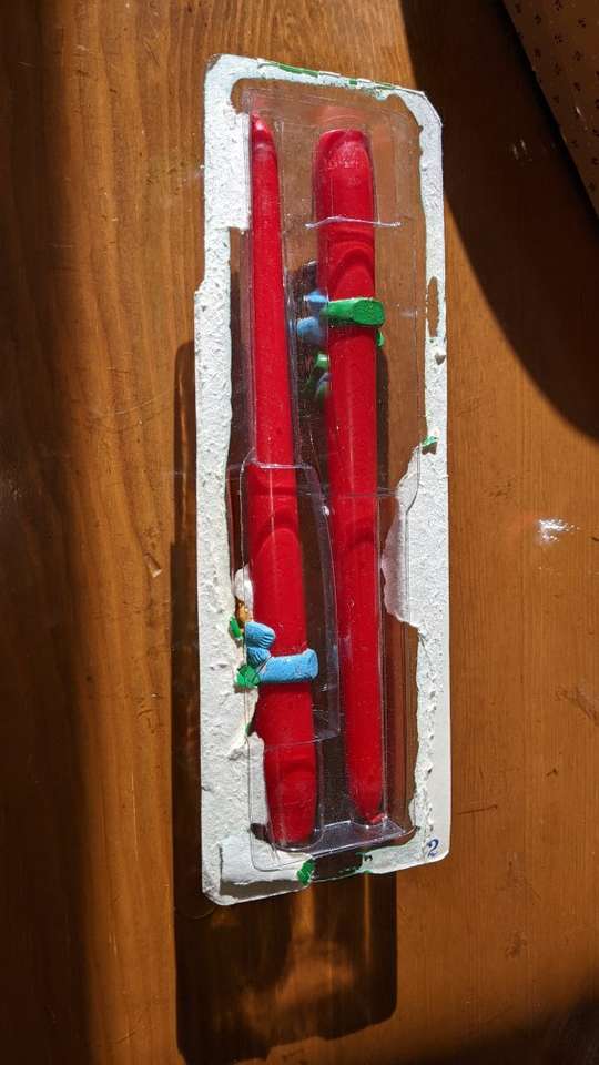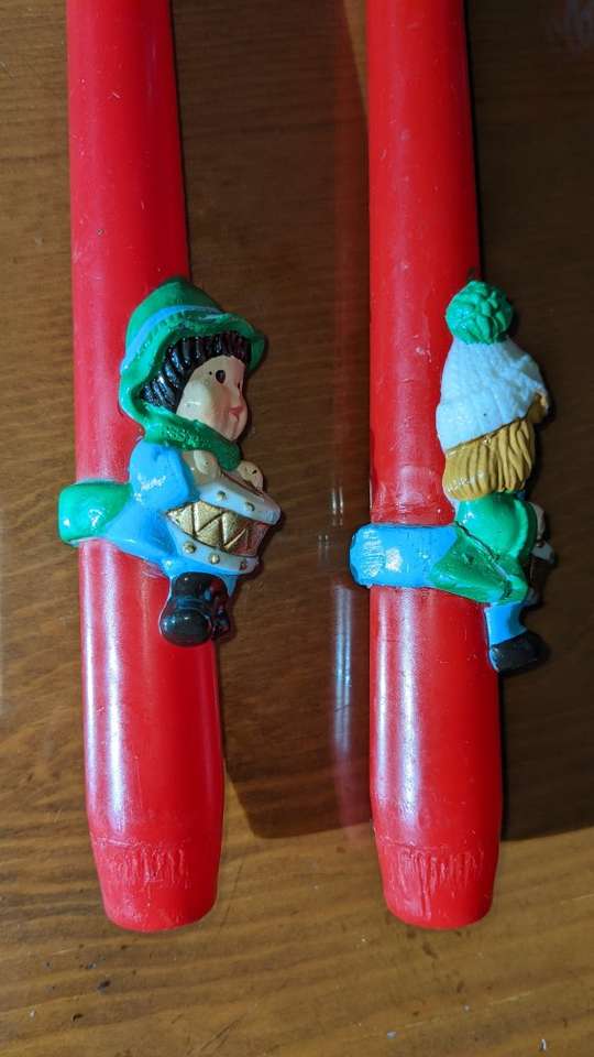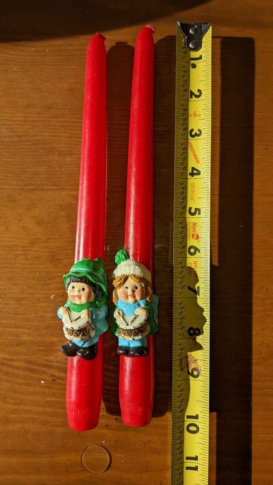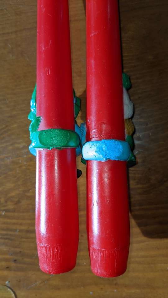 The girl candle has small cracks on each side of the candle (see photos) but that doesn't take away from the ability to display these candles.