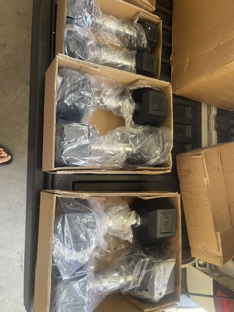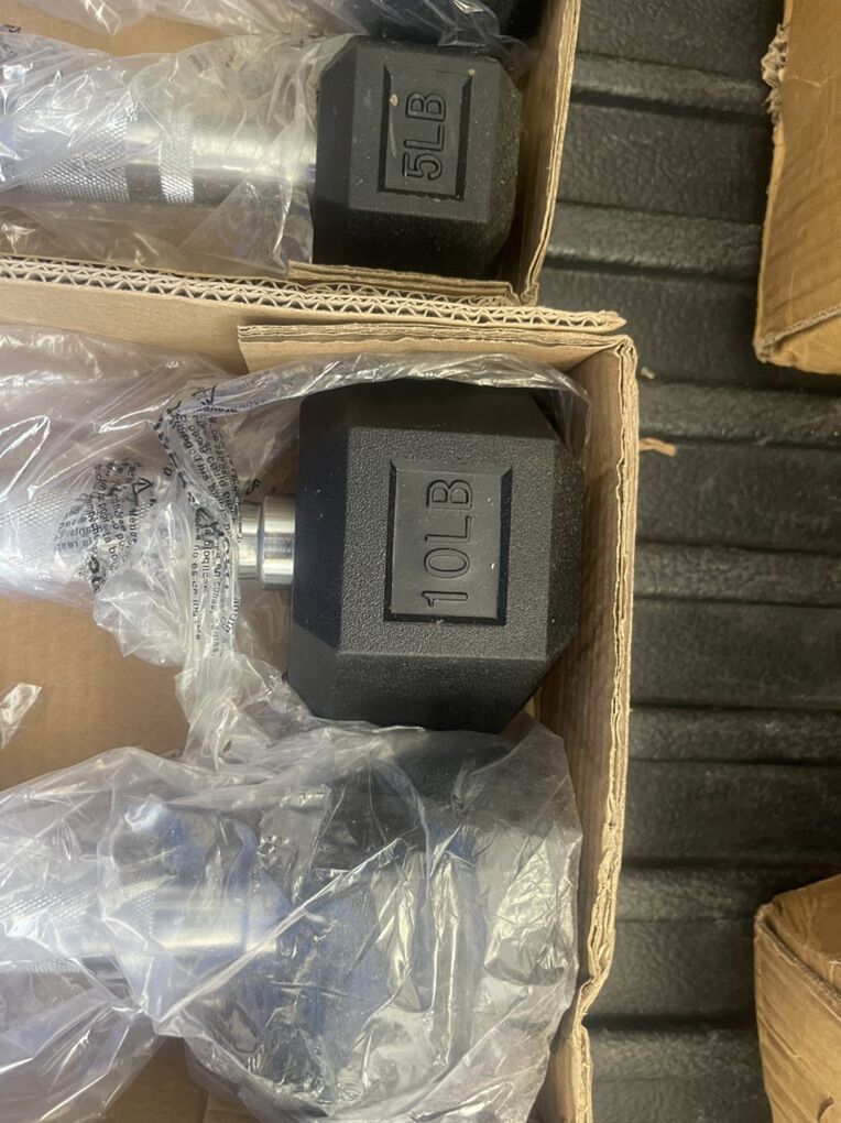 All brand new CASH ONLY Lots of dumbells and small rubber plates 1 dollar a pound ONE DOLLAR PER POUND