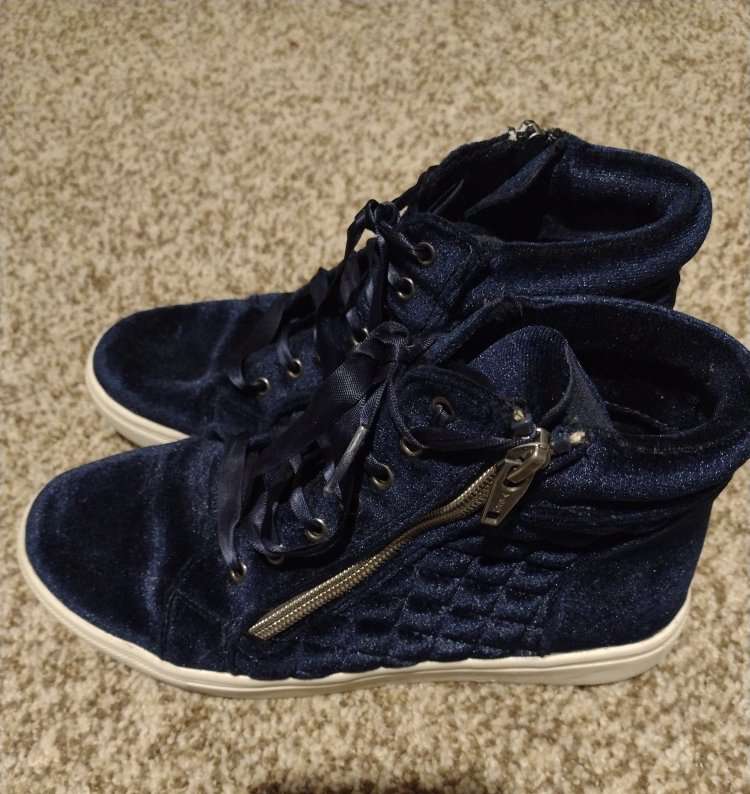 Super cute Navy velvet high tops. Great shape! Zipper on the side to make it easy to put on. Size 4 girls