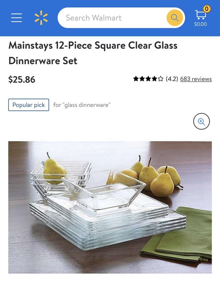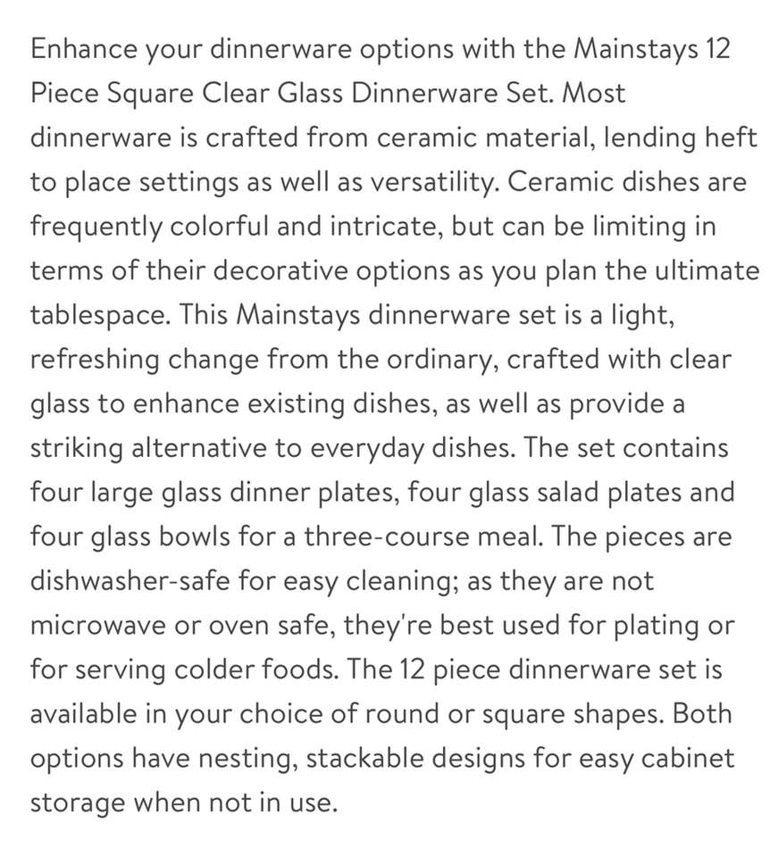 ApplePayBrand NEW in Box • Mainstays 12-Piece Square Clear Glass Dinnerware Set • See More Details & Specs in Photos • TWO Sets Available