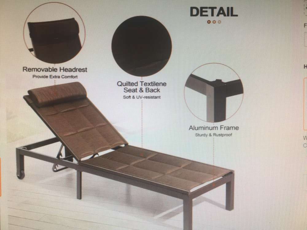 Brand new (still in original box) Patio Quilted Chaise Lounge With Pillow. Color is brown. Built of aluminum which is anti-rust and lightweight. Has two wheels so you can move it easily. Asking just $75.