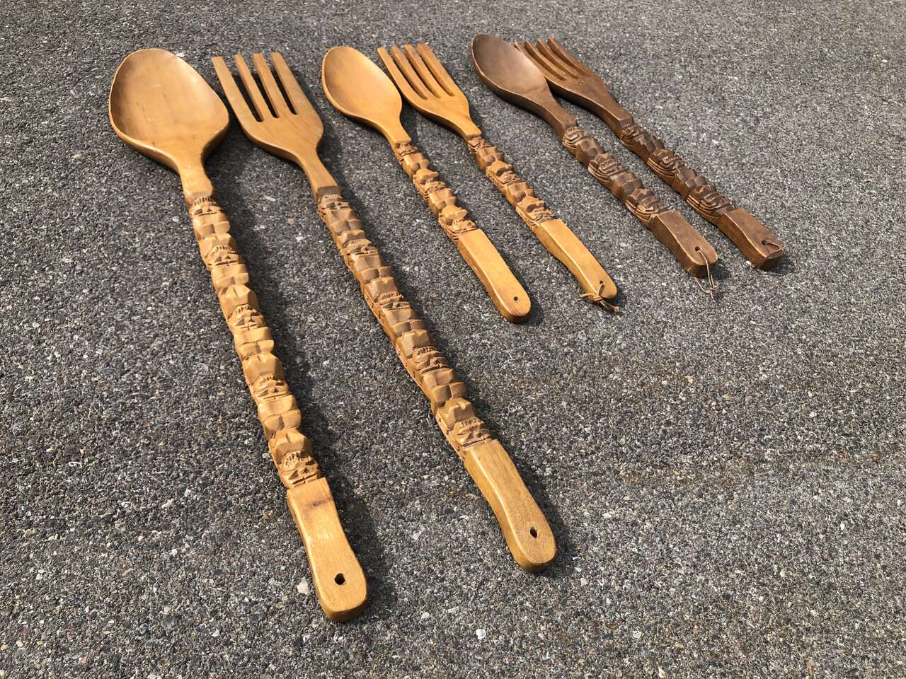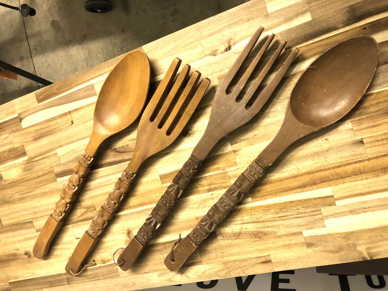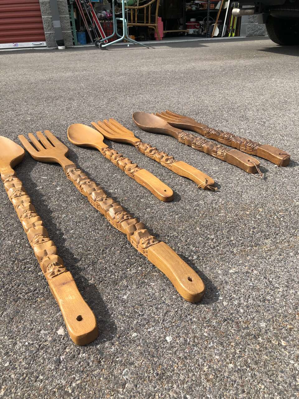 Large Vintage mid century hanging wooden spoons $30 per set. I have a smaller ones too
