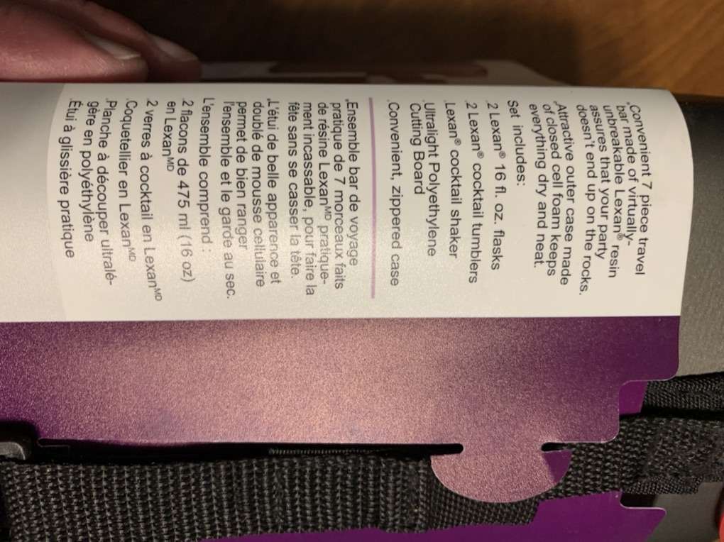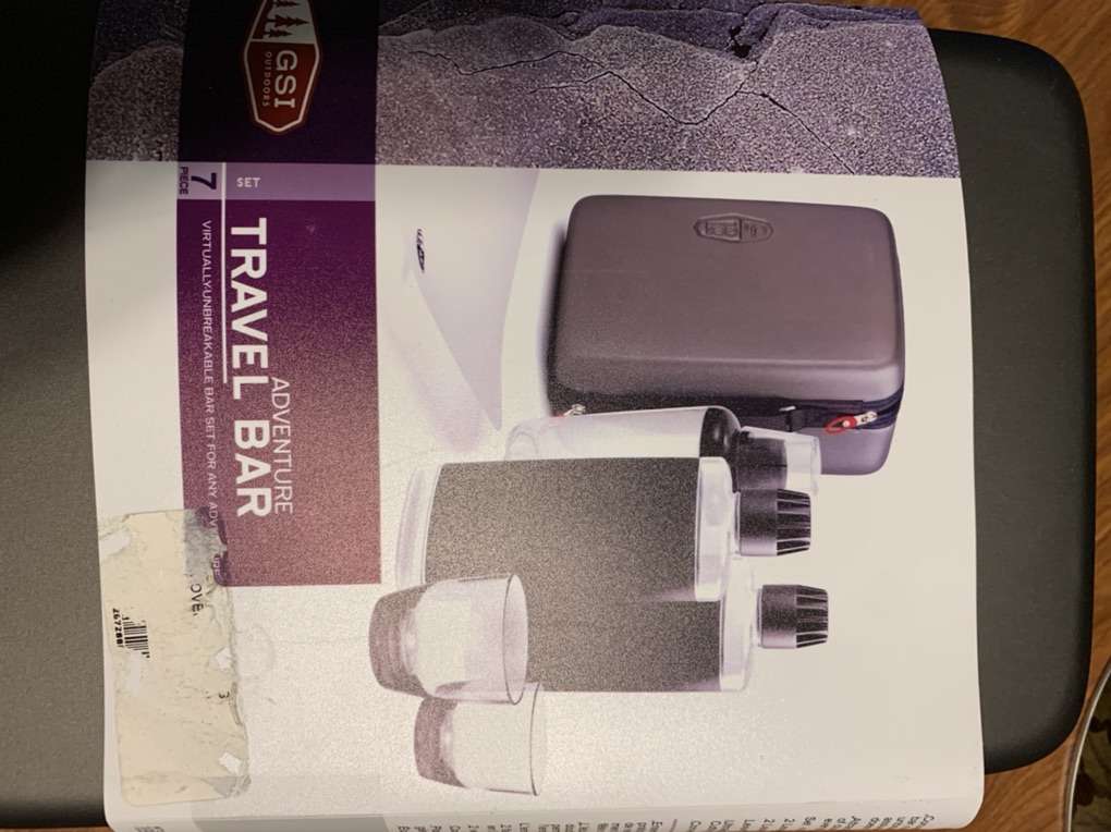 VenmoBrand - GSI Outdoors Convenient 7 piece travel bar made of virtually unbreakable Lexan, assures your party doesn’t end up on the rocks. Includes: 2 Lexan 16 fl. oz. Flasks, 2 Lexan cocktail tumblers, Lexan cocktail shaker, Polyethylene cutting board, Knives for cutting lemons limes or other fruit, Zippered case